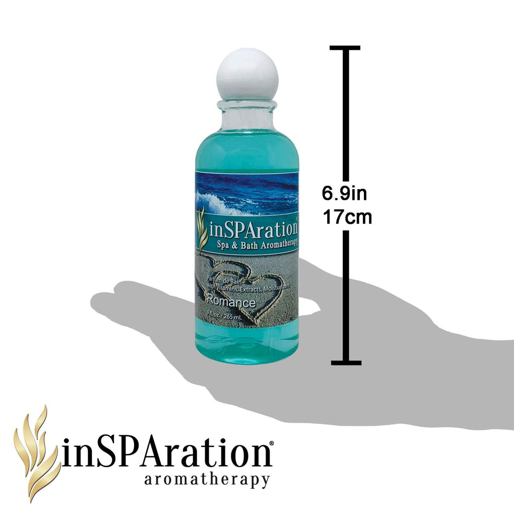 InSPAration Spa Fragrance 9 oz. Bottles! Directions: For Spas and Hot Tubs add 2-3 capfuls. For Baths add until desired aroma is reached. inSPAration, the leading aromatherapy fragrance, for Spas, Hot Tubs and Whirlpool Baths has been manufacturing fragrances for over 30 years. Their unique aromatherapy blends are formulated for your hot water enjoyment, creating a rich soothing ''Aromatherapy Experience.'' inSPAration's large variety of fragrances and fragrance blends create that ultimate spa experience while at the same time leaving your skin soft and moisturized. inSPAration Liquids and Crystals are all RX Enhanced. Natural Aloe Vera Extracts and Vitamins E and C have been added to the proprietary blend. Tested by DuPont, Aristech and other leading acrylic manufacturers, inSPAration is proven to be safe for all Spa, Hot Tub and Whirlpool Bath surfaces. Ideal for masking those unwanted chemical odors without foaming, affecting PH Level, or water chemistry. Formulated specially for jetted systems whether for Spas, Hot Tubs, or Hydrotherapy Tubs, inSPAration has been proven safe for all motors, jets and acrylics. inSPAration contains no alcohol and is water-soluble. inSPAration's custom blended Fragrances come packaged in 9oz. Bottles, 1/2oz.single-use Pillow Packets, Spa Crystals, Sampler Bags and many different kinds of Gift Packages. With over 50 Fabulous Blends there are scents for every different occasion.