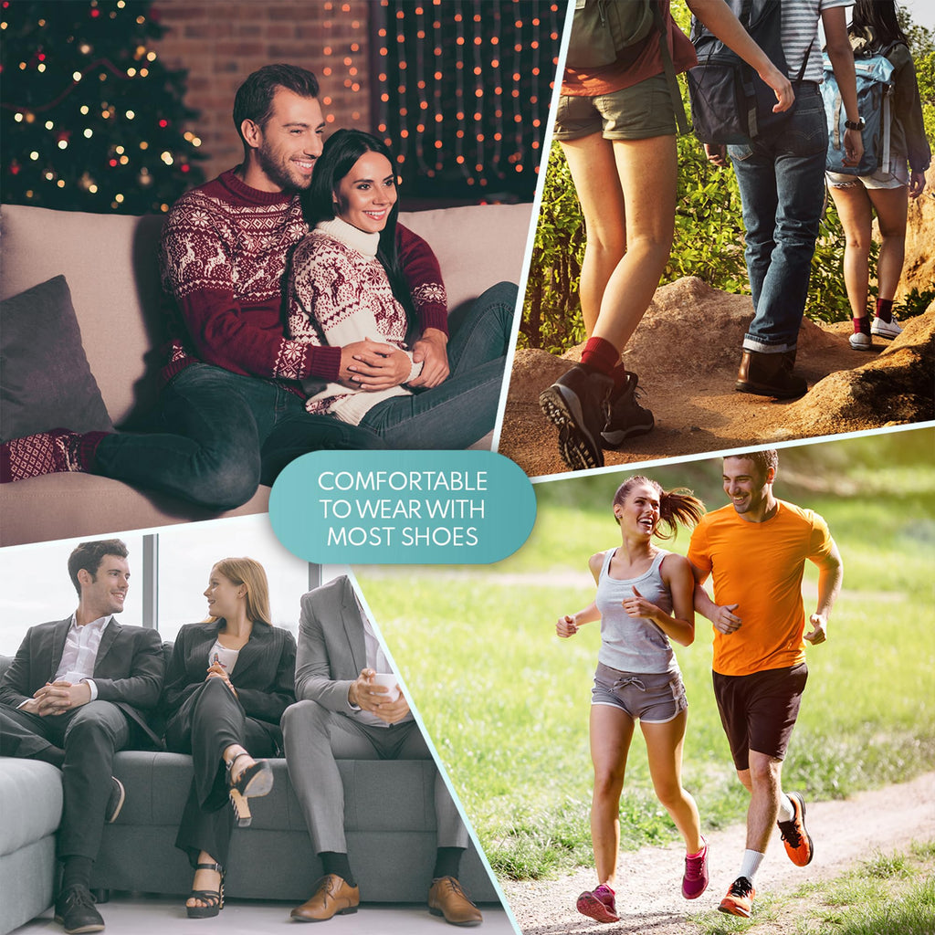 Our Bunion Relief Sleeves are sure to finally put an end to your bunion pain. The bunion sleeves provide excellent cushioning yet are slim enough to wear under socks and in your regular footwear. So wear these all day to remain unhindered and free of pain. This bunion cushion sleeve features a soft gel bunion pad at the sensitive bunion area to reduce friction between the bunion and footwear. This will prevent blisters and redness form appearing and will add comfort to your every step. In addition, the bunion protector also includes a gel toe spacer that is ensconced comfortably between the first and second toe and works to gently separate the two for better toe alignment and ultimate bunion correction. It also works to reduce friction between the toes and prevent sores and painful rubbing. These are large enough to be effective yet small enough so you can forget that they're there! Some of its unbeatable features: Professional design Durable and reusable Fits in all footwear Discreet and unobtrusive Medical grade Maximum bunion relief Natural and noninvasive Fits all foot sizes Unisex