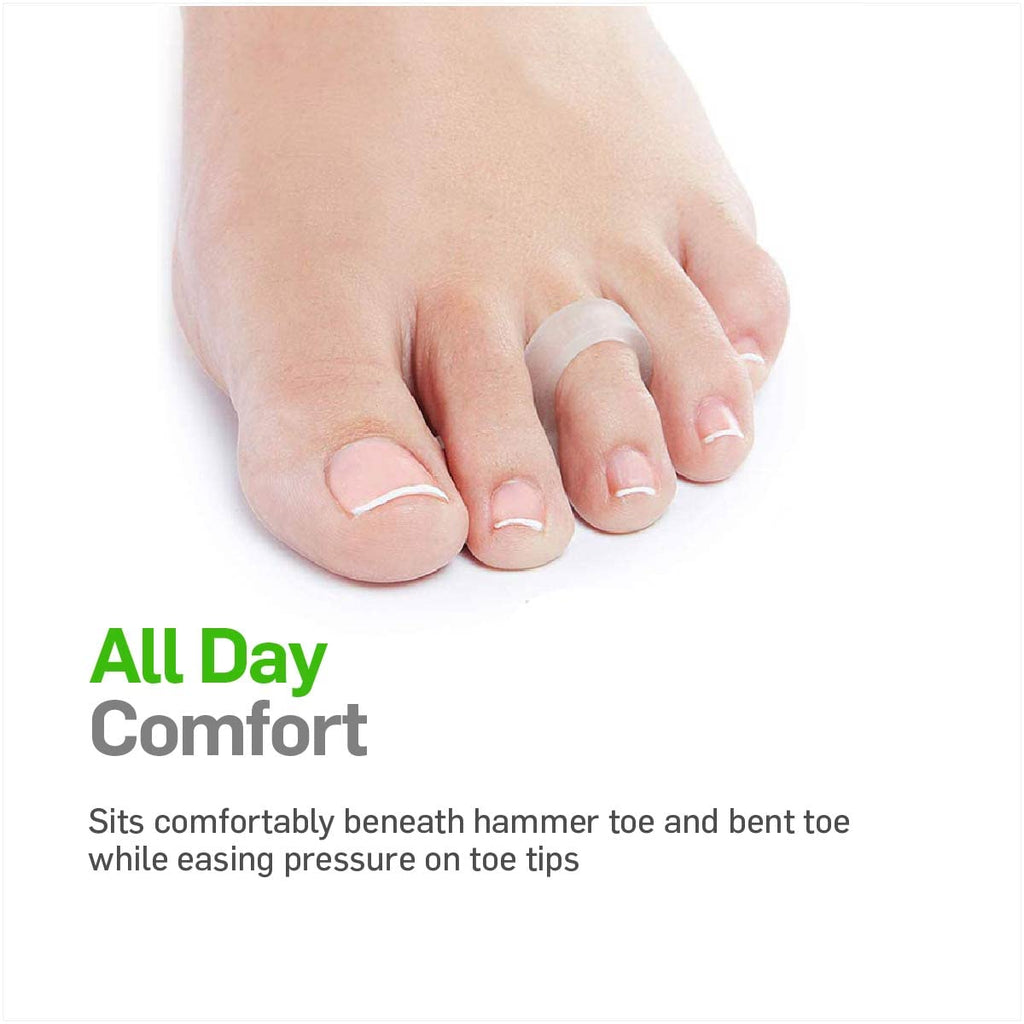 Wear this transparent and comfortable toe crest all day to support your bent toes while you walk. The NatraCure Gel Hammer Toe Crests help relieve hammer or arthritic toes, while easing pressure on toe tips and reducing stress on the metatarsal shafts. Gel slowly releases medical grade mineral oil which softens and moisturizes skin.