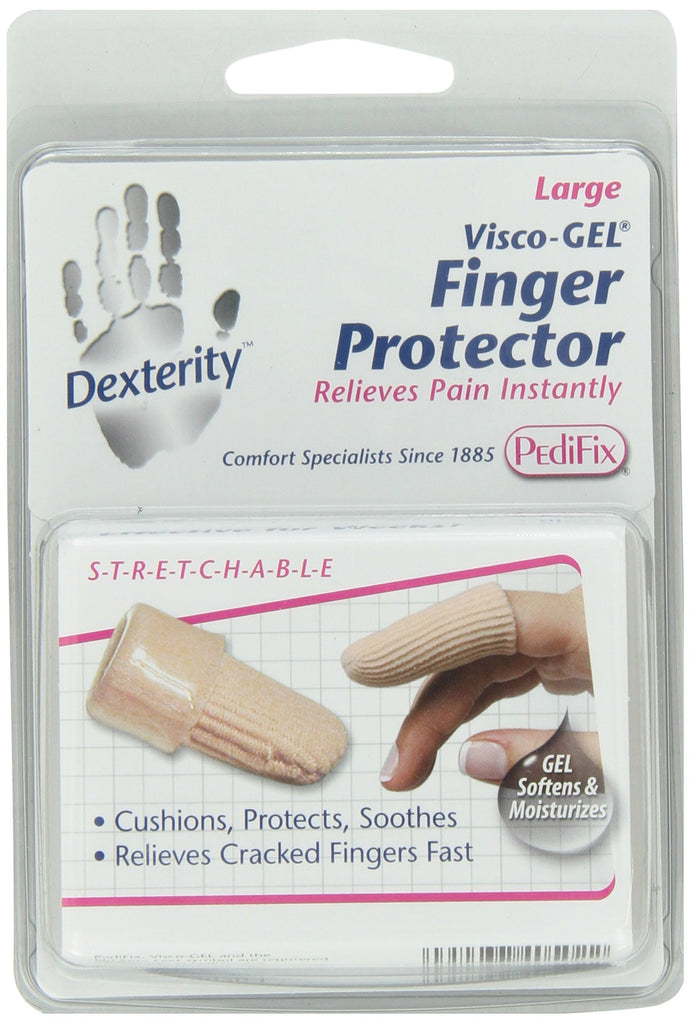 • Q: What is the PediFix Dexterity Finger Protector used for? A: The PediFix Dexterity Finger Protector is designed to relieve pain from dry, cracked skin, arthritis, or injury. It protects nails, fingertips, and knuckles while providing gentle compression and support.