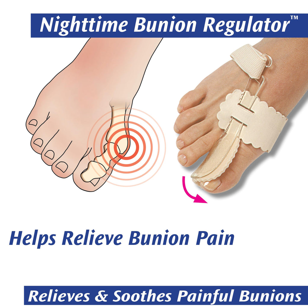 • Q: How does the bunion regulator work? A: The bunion regulator gently stretches the tendons and positions the big toe in correct alignment, helping to alleviate pain and promote healing.