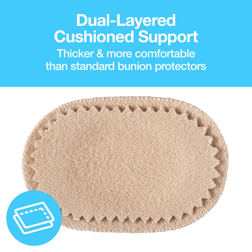 Relieve painful bunions by covering them with a ZenToes premium bunion cushion that helps reduce pain caused by shoe pressure, friction and rubbing. When youve got a bunion, every step can feel excruciating as it presses against the inside of your shoe or rubs against your sock. And when your step pattern changes because youre trying to avoid friction, it can cause a rippling pain effect that impacts your knees, legs, hips and back. Thats why we created our double-layered bunion cushions that help you stay on the go with all day comfort and relief. Crafted with a self-stick, water-resistant adhesive, these thick cushions are designed to stay on all day long-even through long work days and afternoon runs. In fact, theyll continue to provide protection until you peel them off. Gentle on even the most sensitive skin, get ZenToes bunion cushions today and dont let bunion pain slow you down.