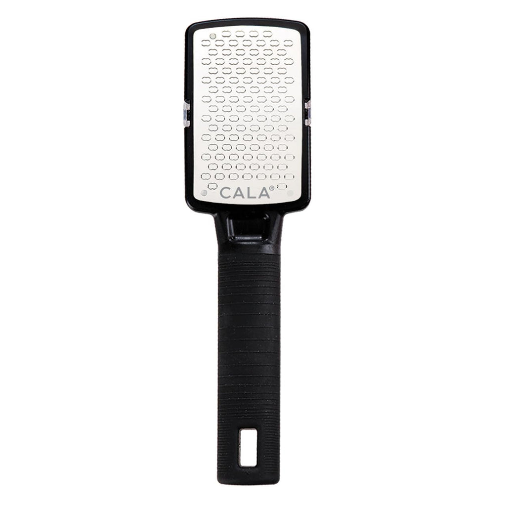 Cala silky glide Pro Black callus remover is made up of stainless steel micro file. Can be used on both wet and dry skin. It's expertly designed wide surface effortlessly removes tough calluses. Sleek, ergonomic grip for maximum comfort & control. Safety cover included for safe storage when not in use.