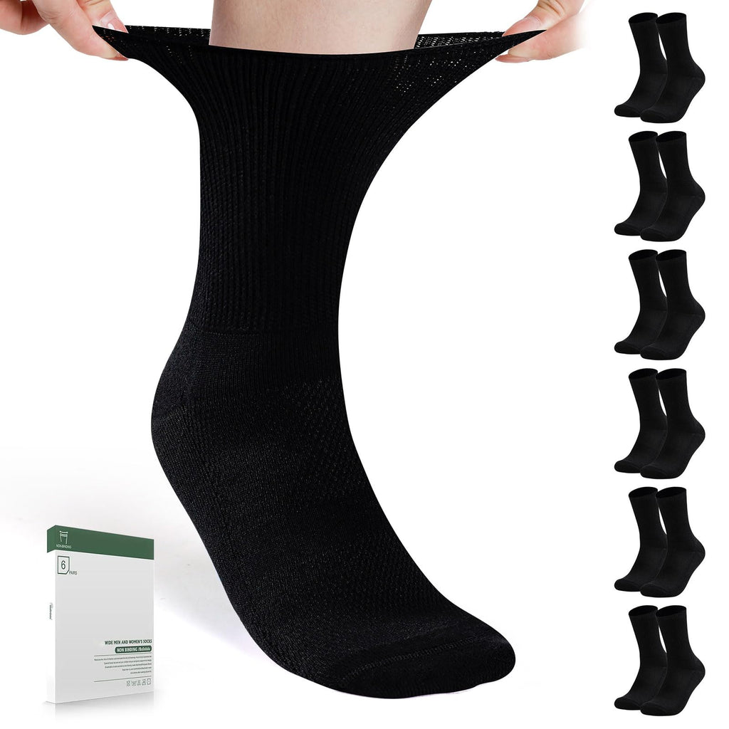 Unique design for ankle unrestraint--Diabetic Crew Socks for Womens&Mens non binding diabetic socks with unique loose top around your ankles,which can stretch to 11.5 inch(30cm).Healthier viscose material--Diabetic Socks for Men& Women are made from a synthetic fibre of viscose yarn and polyester yarn.Bright colored socks for most people--Our wide ankle Seamless Toe Diabetic Socks Use Real hand-linked seamless toe and Full cushion adds padded protection design can Reduce the risk of infection and blistering, suit for pregnant women, elderly people, diabetics, edema or people with swollen ankle and circulatory problems.