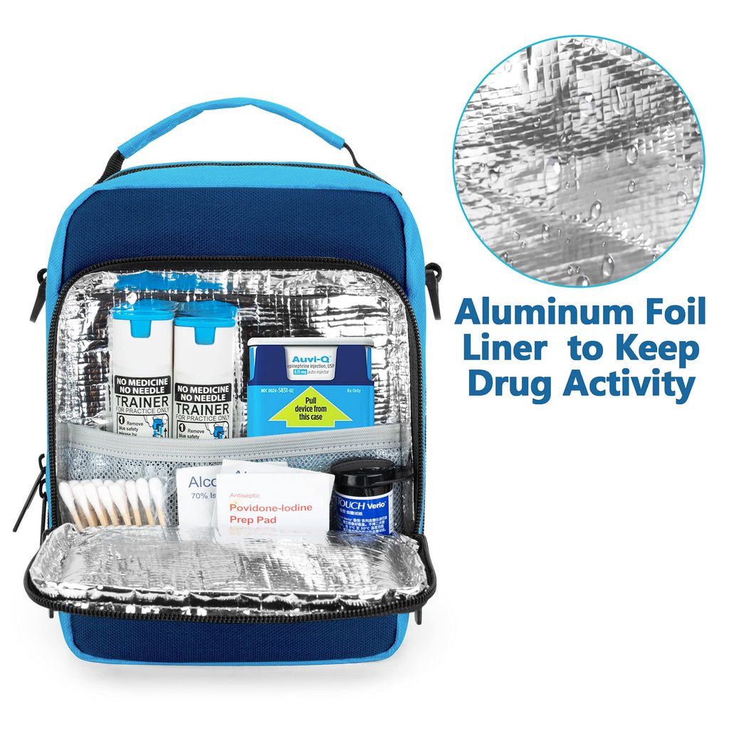 CURMIO EpiPen Carrying Case, Insulated Medicine Bag for Epi Pens, Auvi-Q, Asthma Inhaler, Spacer, Blue (Bag Only, Patented Design)