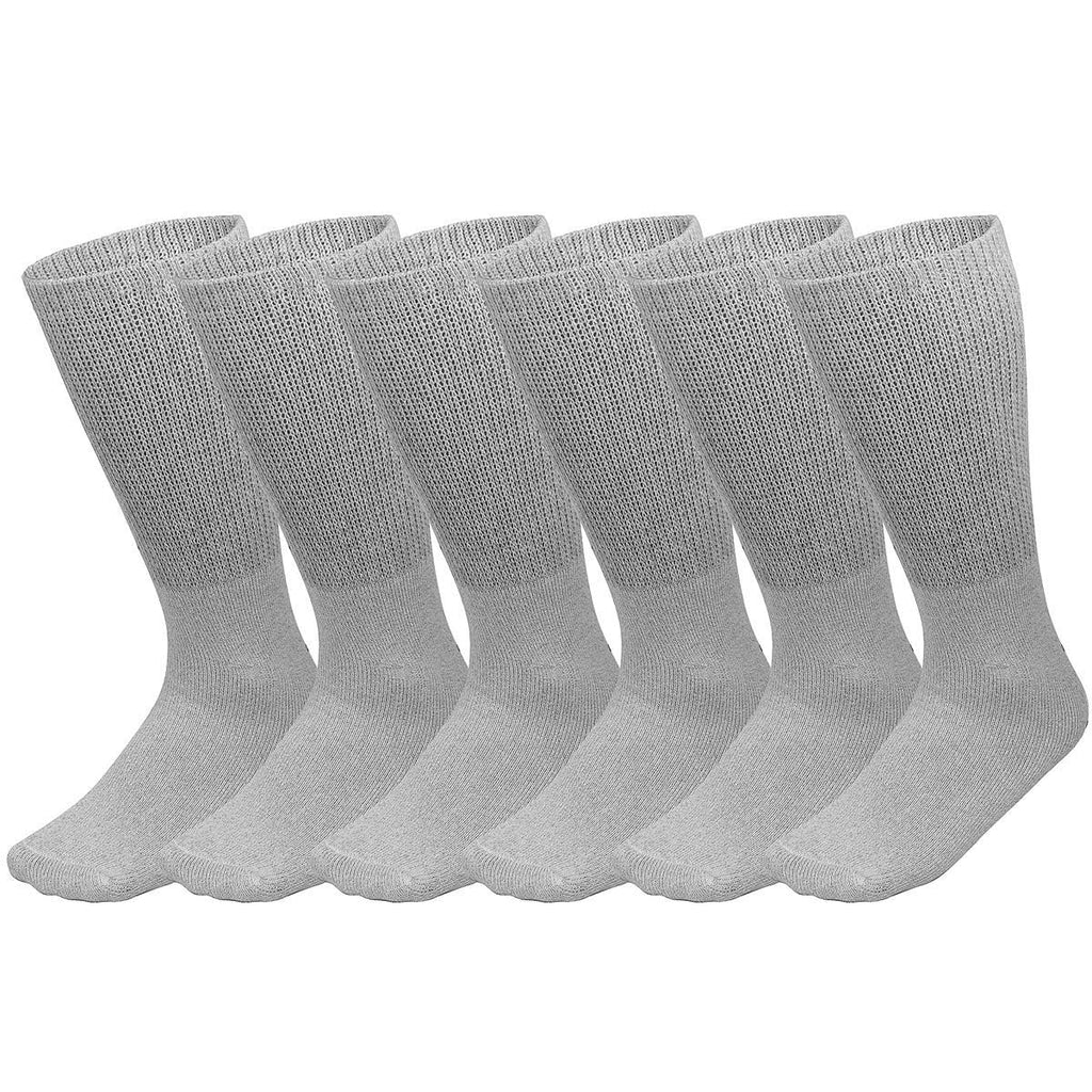 • Q: What size options are available for these socks? A: The socks are available in sizes 13-15 and come in packs of 3, 6, or 12 pairs.