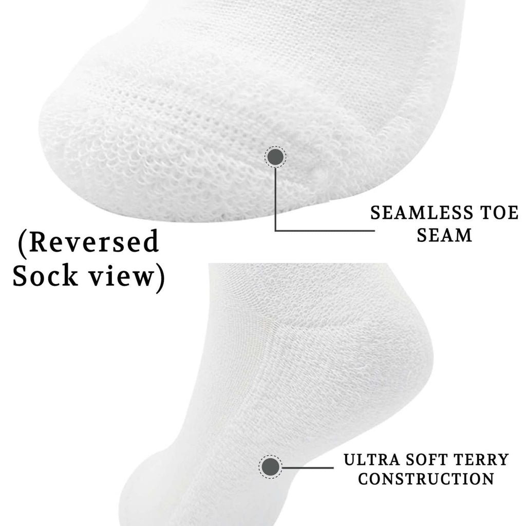 • Q: How do these socks help with foot health? A: These socks feature a non-binding top and cushioned sole, designed to protect against ulcers, blisters, and foot sores, making them ideal for individuals with diabetes or circulation issues.