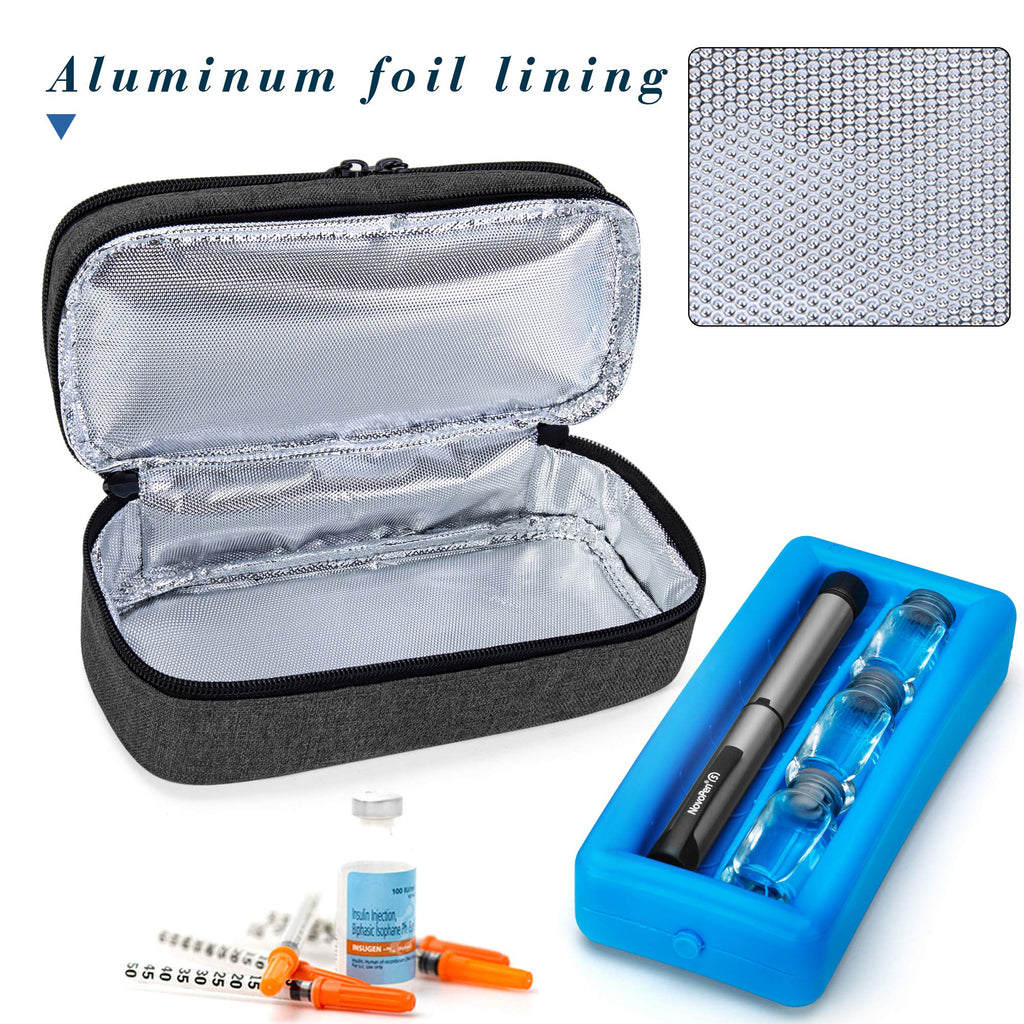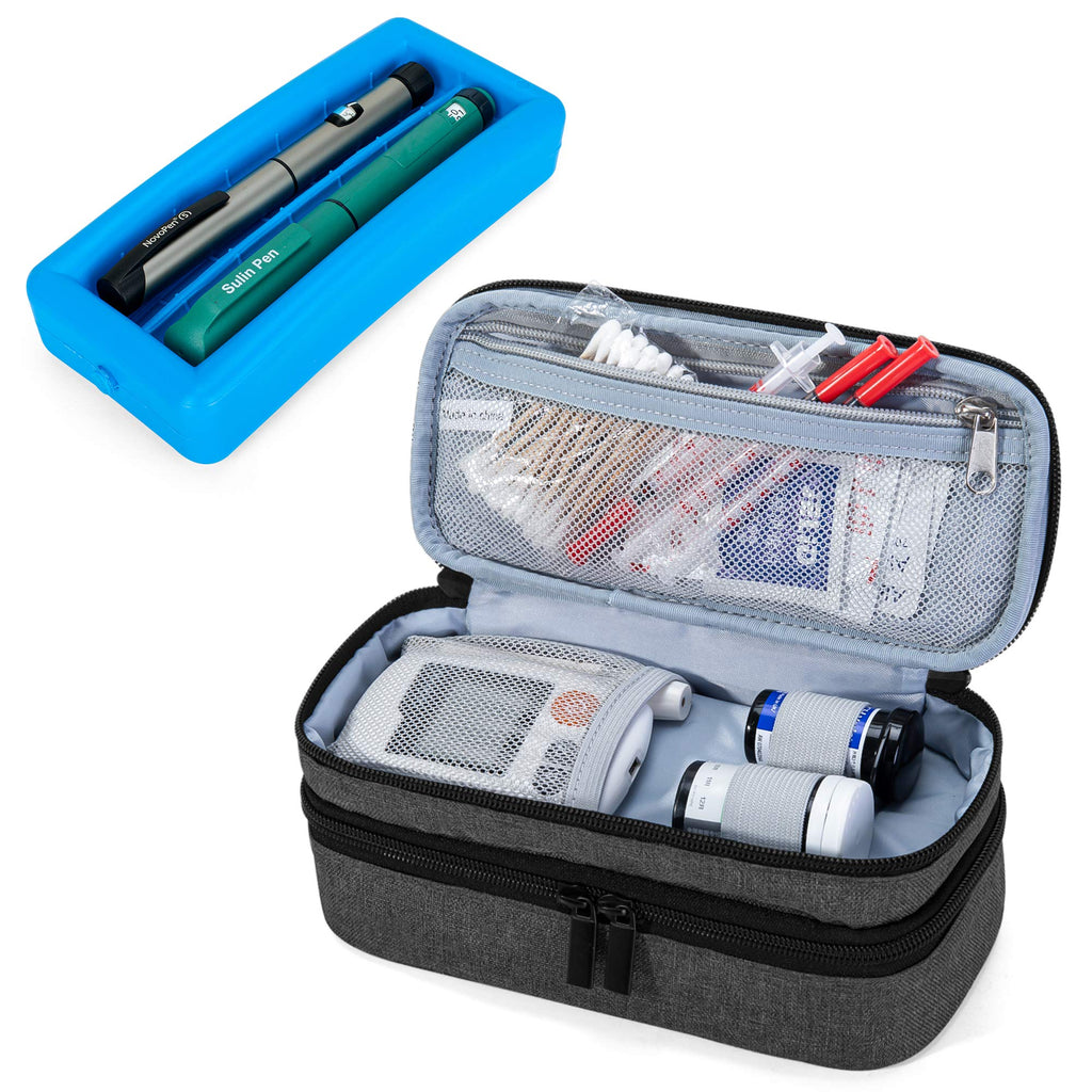 Luxja 2 Layers Insulin Case with an Ice Pack - Holds 6 Vials (10ml) or 2 Insulin Pens, Diabetic Bag with Supplies Storage Pockets, Black