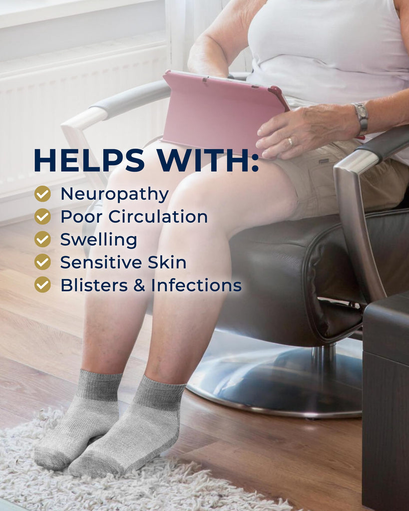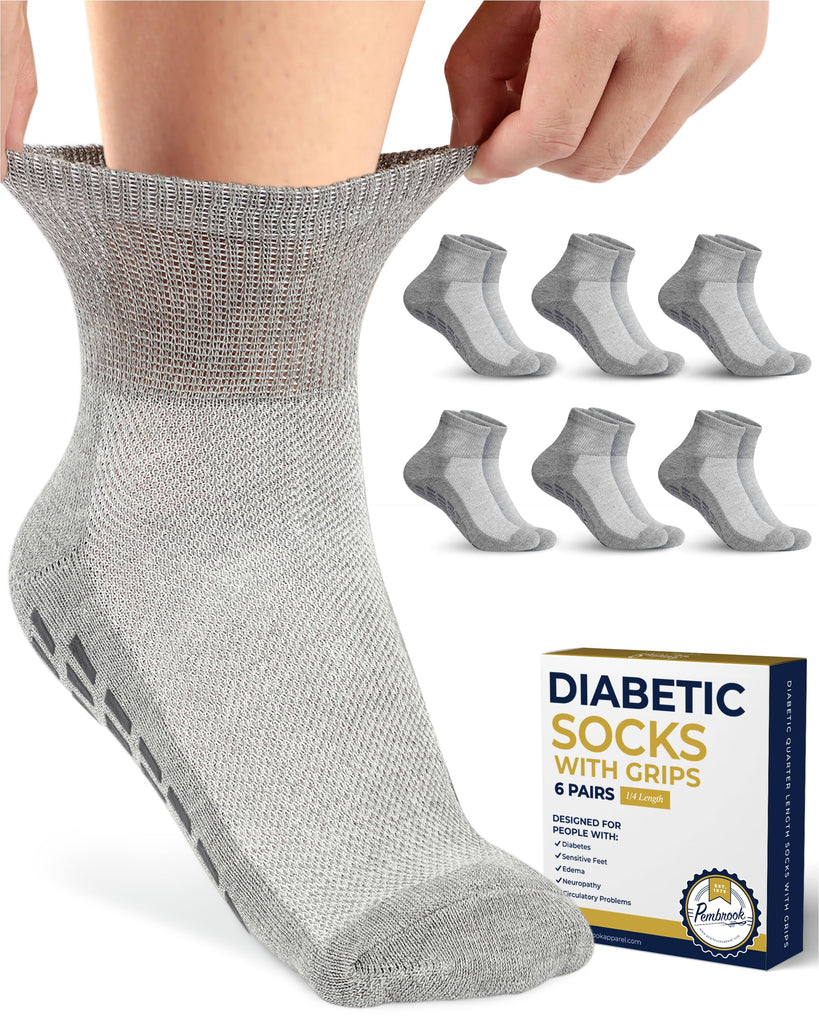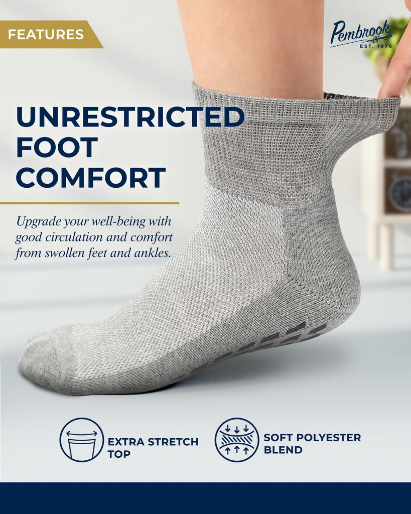 Whether you want white, gray, bright colored or black diabetic socks - look no further. Our ankle socks for blood circulation for women and men are great for your day-to-day activities and will keep your feet comfortable whatever you are up to. Our diabetic quarter socks for men and women are recommended as neuropathy socks for men and women and socks for swollen feet and ankles women and men. The Pembrook non slip diabetic socks 1/4 length will not disappoint! Women and mens diabetic socks can significantly improve your life quality - try diabetic non slip socks for men yourself today!