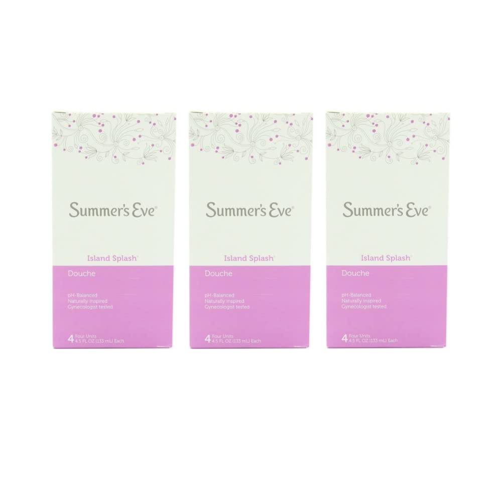 The Summer's Eve Island Splash Douche features a clinically-tested cleansing formula made with purified water that leaves you feeling fresh and clean. Included in the package are four one-piece units that are assembled and ready to use immediately. The nozzle of each feminine hygiene product boasts a comfortable tip and a flexible neck for convenience and ease of use. This PH-balanced douche is made with an island splash scent that's both naturally inspired and gynecologist tested. This summer's eve feminine item will provide you with natural care.