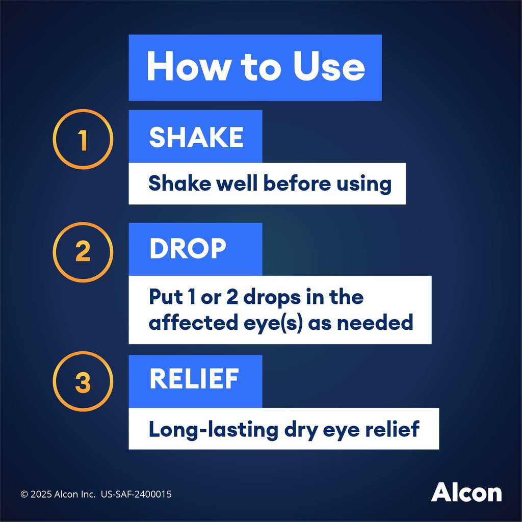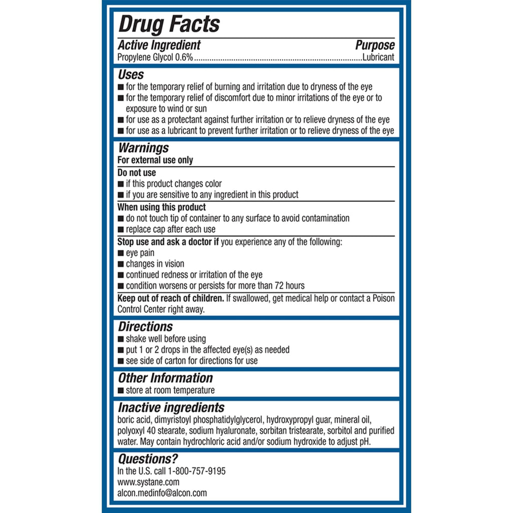 Systane Pro Preservative Free Lubricating Eye Drops is a triple action formula that hydrates, restores and protects dry eyes for long-lasting dry eye relief. Systane Pro Preservative Free contains the active ingredient propylene glycol to lubricate and soothe dry eyes, and is supported by hyaluronate, which is naturally occurring in tears, to provide long lasting hydration. This unique formula enhanced with lipid nanodroplets provides superior tear evaporation protection versus other leading drops*. Systane Pro Preservative Free comes in a convenient 10ml multi-dose bottle, perfect for on-the-go use to keep your eyes comfortable and moisturized wherever your day takes you.^In vitro data; versus Blink Triple Care, IVIZIA, Refresh Optive Advance, Refresh Optive Mega-3, Systane Hydration and Systane Complete* Not a rewetting drop