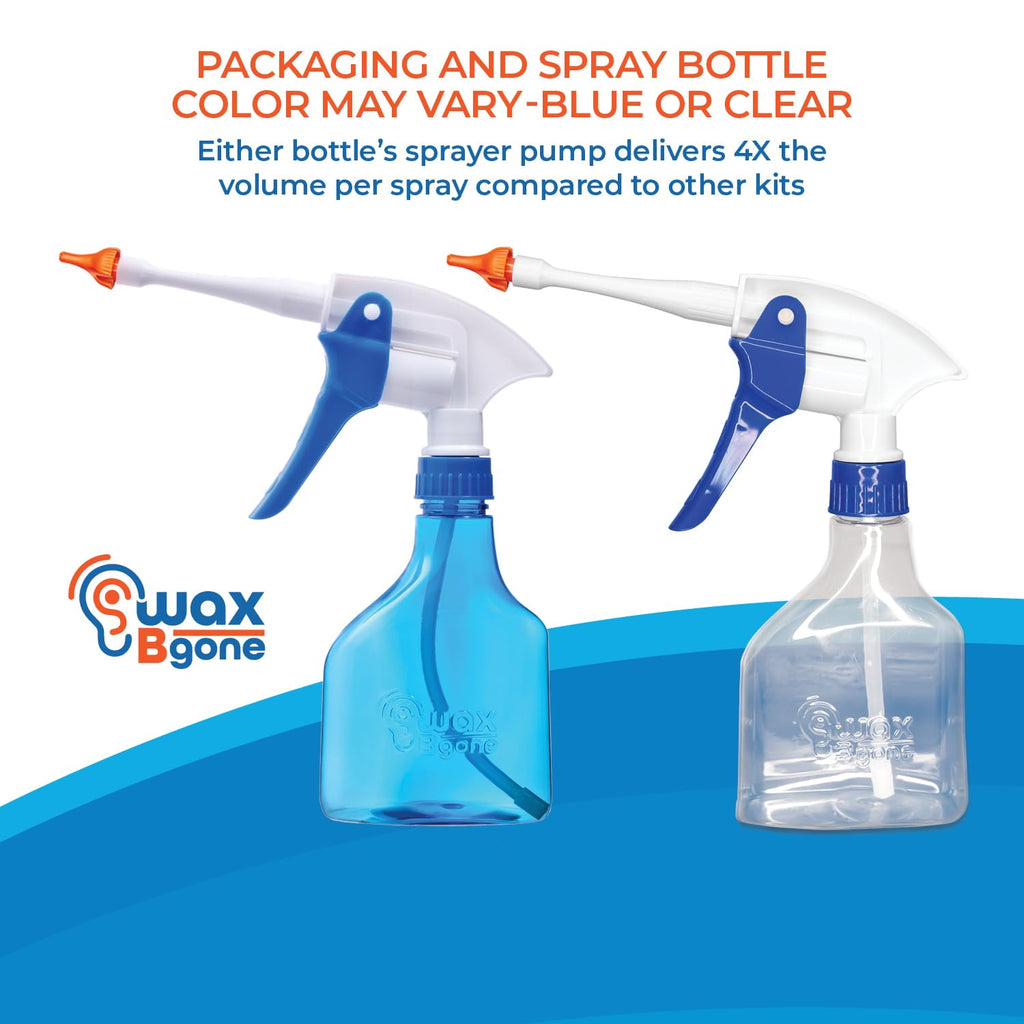 • Q: What is included in the WaxBgone Ear Cleaning Kit? A: The kit includes an 11oz spray bottle with a high output trigger pump, a dropper bottle for wax softening drops, an ear basin, an otoscope, three reusable SoftSpray Irrigation Tips, and easy-to-follow instructions.