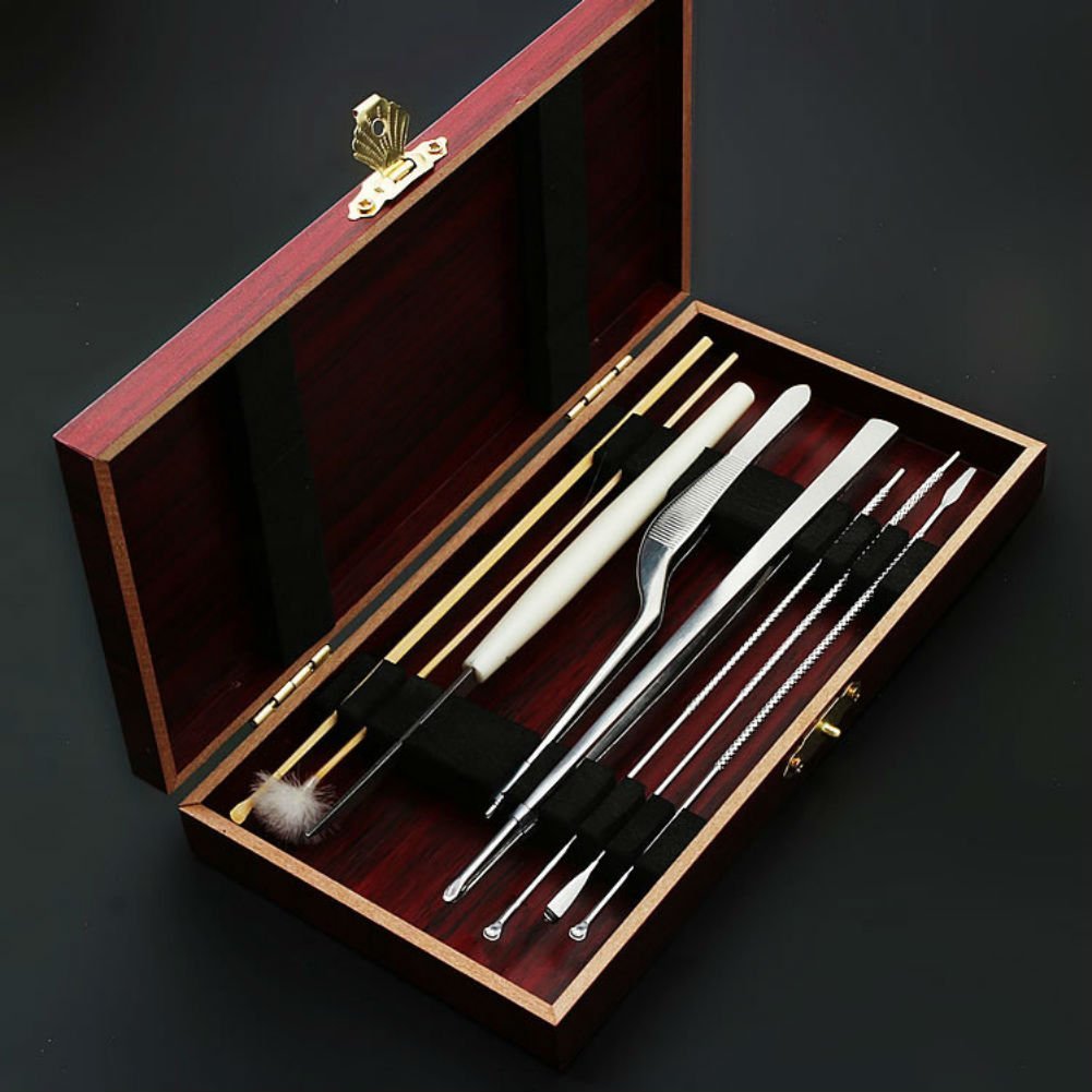 AKOAK 8 Pcs/Set Ear Pick Ear Wax Removal Cleaner Ear Care Tools Multifunction Beauty Tool Kit.--Portable kit,easy to carry and store.--Carefully designed,very easy to use and remove.--Easy to scrape dry,moist and compacted ear wax,and clean your ears in seconds.--Convenient and useful tools for personal or your family Packaging: jujube red wooden box Size: 18 * 9.8 * 2.5 cm Pick ears 8 sets:2 pc stainless steel ear spoon,luminous ear curette,stainless steel,stainless steel tweezers,ear knife,goose feather stick,bamboo ear spoon.Package Include:8 Pcs/Set Ear Pick Ear Wax Removal Cleaner