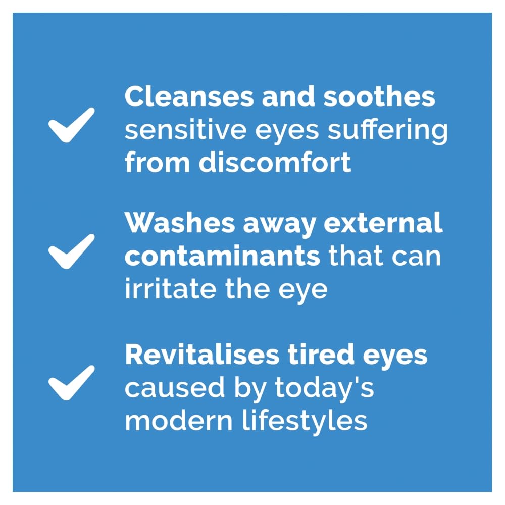 • Q: How do I use the Optrex Eye Wash? A: To use Optrex Eye Wash, fill the included eye bath with the solution, lean forward, and place the eye bath over your eye. Open and close your eye for a few moments to wash away any irritants. Repeat as necessary.