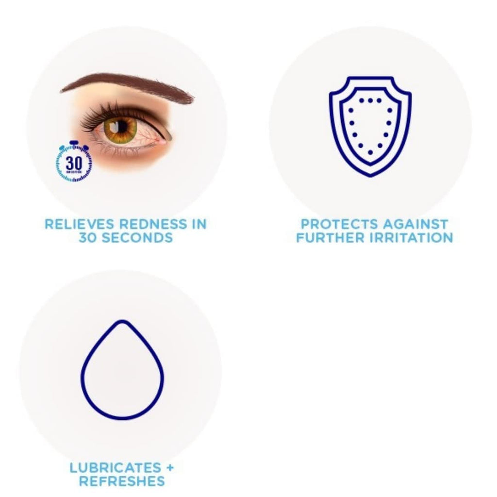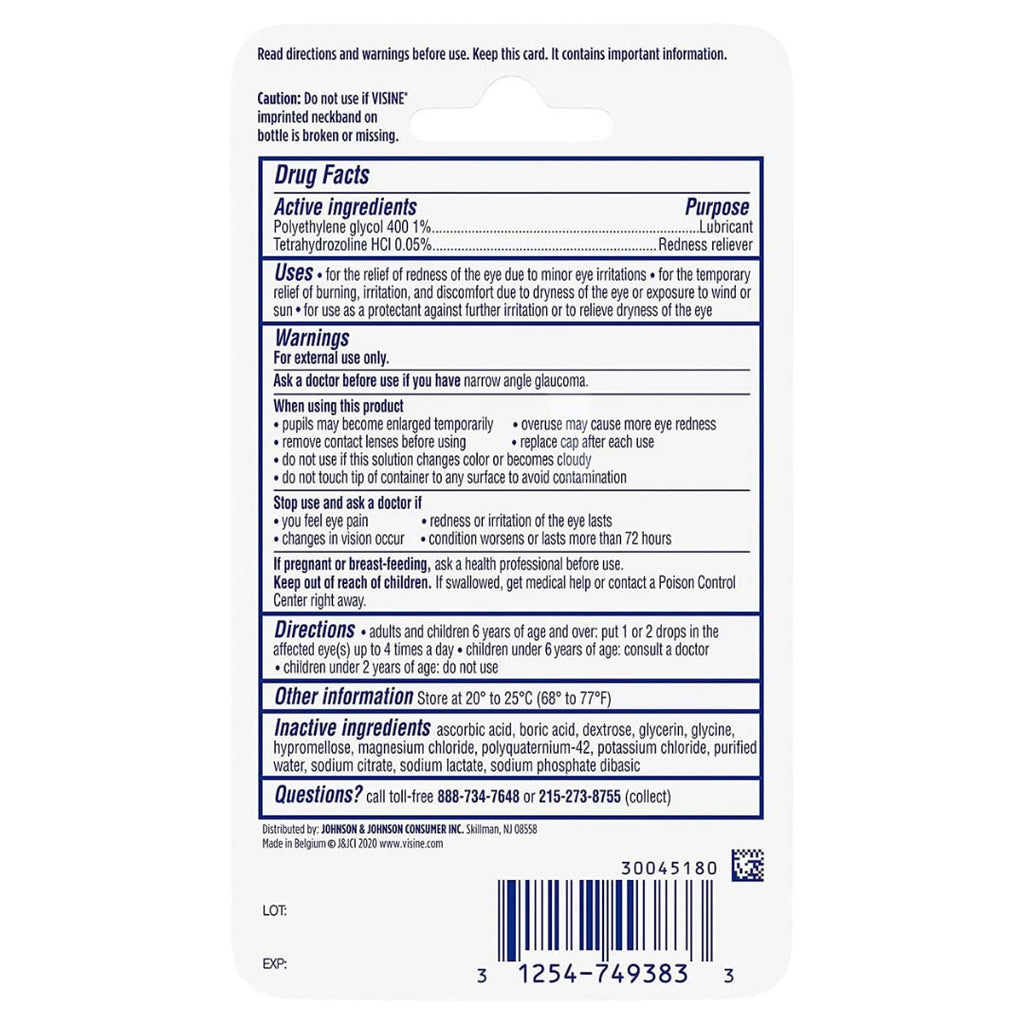 For relief from dry, red eyes, use moisturizing Visine Advanced Redness + Irritation Relief Eye Drops. This formula combines the proven redness-relieving power of Visine Original with three moisturizing ingredients to cool, soothe, and refresh irritated eyes and protect against further eye irritation. Use these lubricating eye drops to soothe dry, red eyes after riding on an airplane, staring at a computer screen for a long period of time, or experiencing too much sun or wind exposure. The small 0.28-fluid ounce bottle easily slips into a bag or purse, so you can soothe your irritated and dry eyes anywhere.