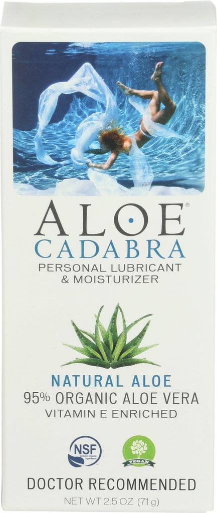 Aloe cadabra personal lubricant, natural aloe is made to supplement the body's natural lubrication. This doctor recommended and fda cleared lubricant nourishes your skin while enhancing your pleasure and comfort. Be aware of what you put on your skin! It will be absorbed into your most delicate tissues and into your bloodstream. This lubricant is free of parabens, glycerin, glycol, silicone, petroleum, GMOs, gluten, sulfate and dyes. It is 100% edible and vegan. Each tube of aloe cadabra personal lubricant, natural aloe contains 2.5 ounce of non-greasy lubricant. See nutrition facts panel for allergens.
