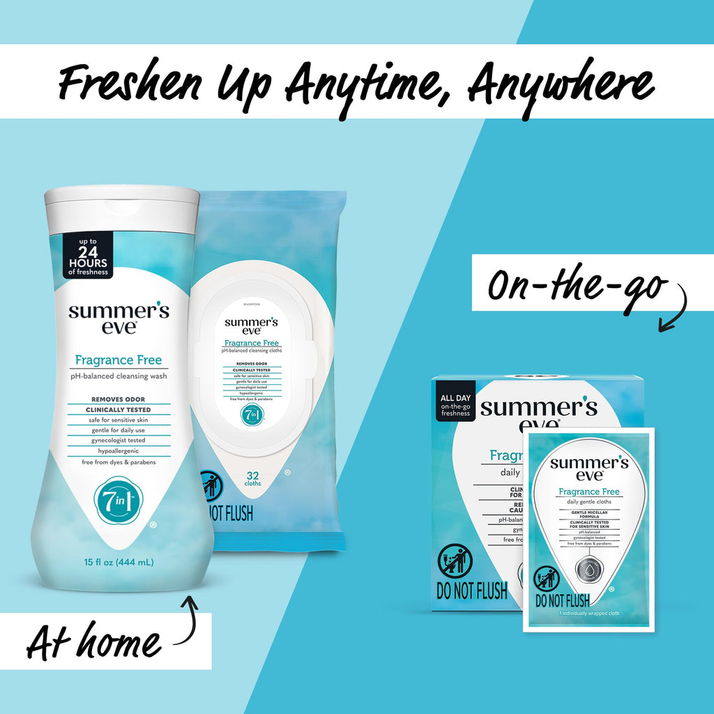 Experience a gentle kind of cleansing with micellar water for your intimate area. A clean experience that isn't complicated and overdone. A daily intimate care routine that lets you experience that unique everyday Summers Eve readiness. Summer's Eve feminine wipes are created for your most intimate areas to gently cleanse away the bacteria that can cause odor. Uniquely formulated and pH-balanced to match your body's natural chemistry. All Summer's Eve feminine hygiene products are gynecologist tested to ensure they are safe, even for sensitive skin. Thats why millions of women trust our expansive range of gynecologist-tested cleansing and care. Our wide variety of products are made for everybody - whether youre at home or on the go, want to bask in fragrant lusciousness or no scent at all or want ultra-gentle or high performance. With every Summers Eve product you use, know that We See You, We Get You, We Got You.