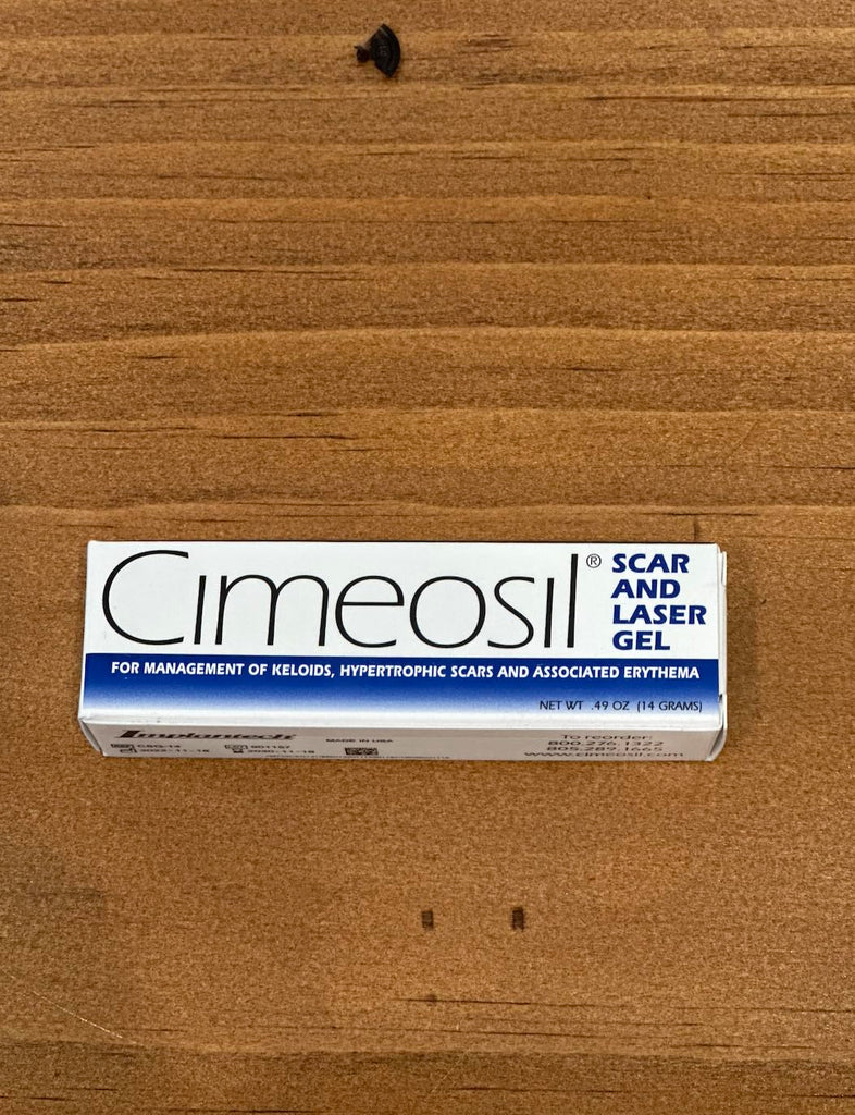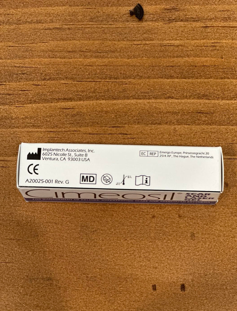 Cimeosil Scar and Laser Gel is a medical grade silicone compound. Cimeosil forms a very thin water repellant membrane over the skin like an invisible bandage. Cimeosil Scar and Laser Gel is specifically formulated for the topical management of Keloid scars and Hypertrophic Scars secondary to trauma of the skin by burns, abrasions, or lacerations.