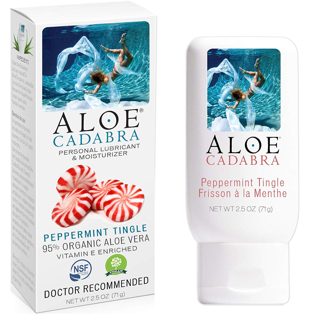 Oh what fun it is with our new Peppermint Tingle flavored Aloe Cadabra Organic Lubricant. This delightfully minty tasting and scented lubricant provides a gentle tingly sensation with no stickiness or mess. Experience a cool, clean and refreshing feel. Made with 95% organic aloe vera. It soothes while it moisturizes.