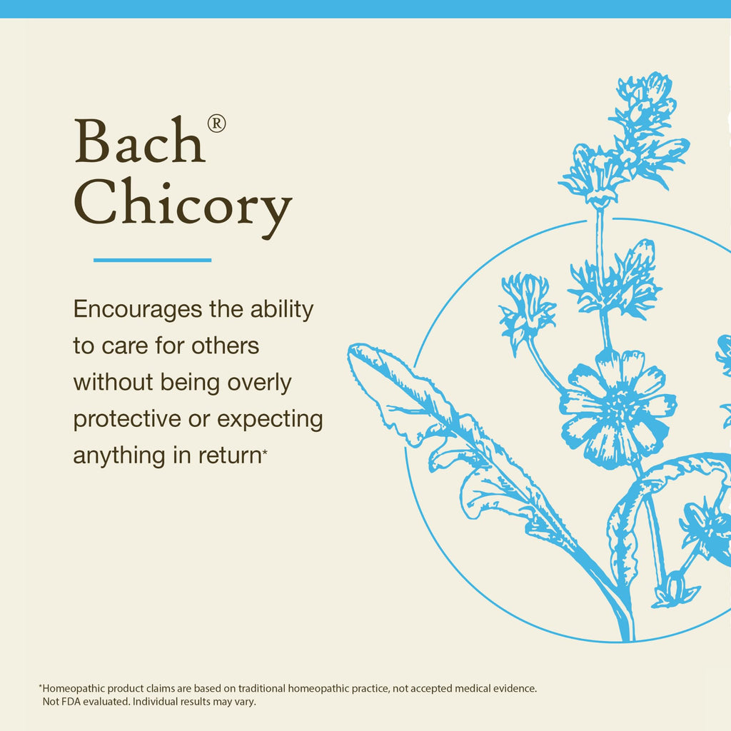 • Q: What is the main benefit of using Chicory in Bach Flower Remedies? A: Chicory encourages the positive potential to care for others selflessly, promoting unconditional love without becoming manipulative or overprotective.