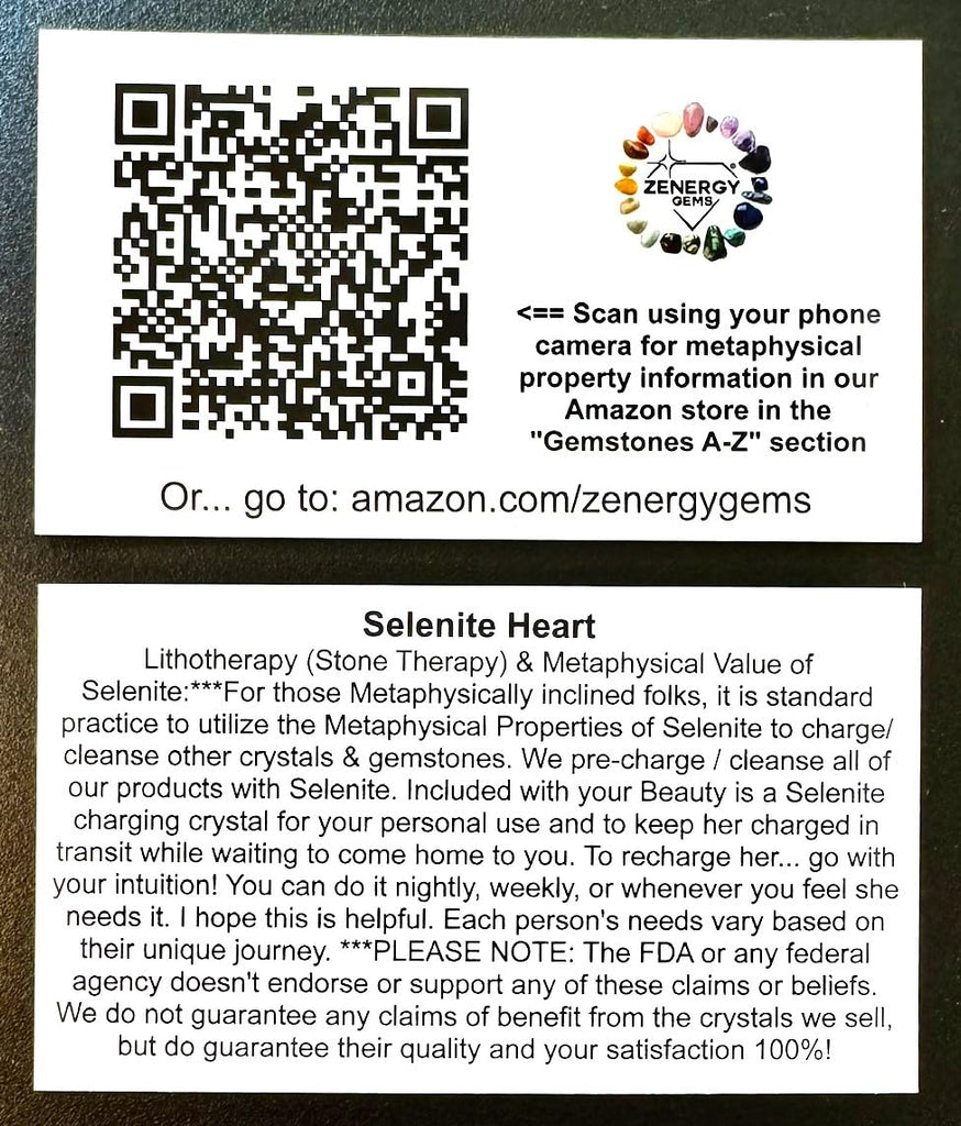 You will receive a Amplifier Clear Quartz Crystal & Moroccan Selenite Charging Crystal from the EXACT lot shown (see the photos)! Lithotherapy (Stone Therapy) & Metaphysical Value of Amplifier Clear Quartz Crystals:*** Amplifier Clear Quartz is known for its ability to amplify Body, Thought, & Healing Energy. It's commonly known as the most versatile multipurpose metaphysical crystal (besides Selenite). Energy Healers agree that it is easy to cleanse, store information & energy in. It is also commonly believed to have the ability to be programmed with intention. Metaphysical practitioners say that it works with all Chakras for balancing, cleansing & healing and they use it to amplify both body energy & thought energy. Amplifier Quartz has a natural tendency for harmony and is commonly considered the Stone of Power . Its believed that Amplifier Clear Quartz can also teach us that actions follow thought & where focus goes, so does manifestation. Amplifier Quartz acts as a purifier & each Quartz crystal tunes into the frequency of the individual working with it & when multiple crystals are used in unison can form a synergistic tool for transformation.Amplifier Quartz can be used in conjunction with any other crystals or gemstones for specific physical problems & will serve as an amplifier of the properties of the crystals it is paired with ***PLEASE NOTE: No federal agencies endorse or support any of these claims or beliefs. We do not guarantee any claims of benefit from the crystals we sell, but do guarantee their quality and your satisfaction 100%! You'll love them and they will love you back for as long as you own them. We can only guarantee the size and quality of products 'sold by' us. Please Check?