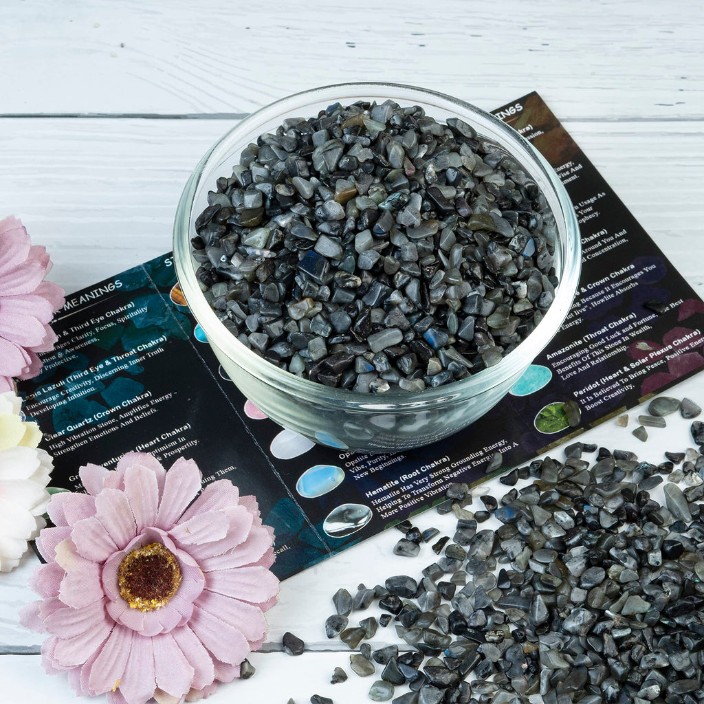 Crocon 1/2 LB Crushed Larvikite Chips Bulk Stone 1100+ Carats Natural Quartz Pieces Irregular Shape Gemstone Tumbling Cabbing Gem Mining Chakra Balancing Reiki and Crystal Healing Home Office D cor