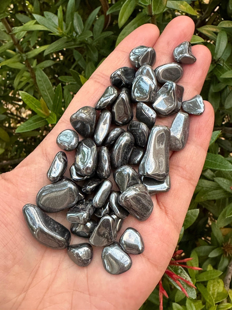 • Q: What is the size of the Hematite chips? A: The Hematite chips range in size from approximately 8mm to 20mm, with some variation due to their natural formation.