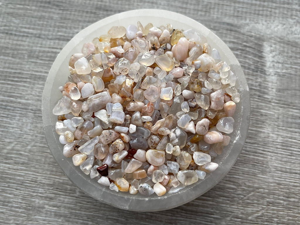 • Q: What are Cherry Blossom Gemstone Chips used for? A: Cherry Blossom Gemstone Chips can be used for a variety of purposes, including creating gemstone trees, jewelry and art designs, gemstone collections, air plant substrates, vase fillers, essential oil bottle infusions, and decorative accents in gardens and home decor.