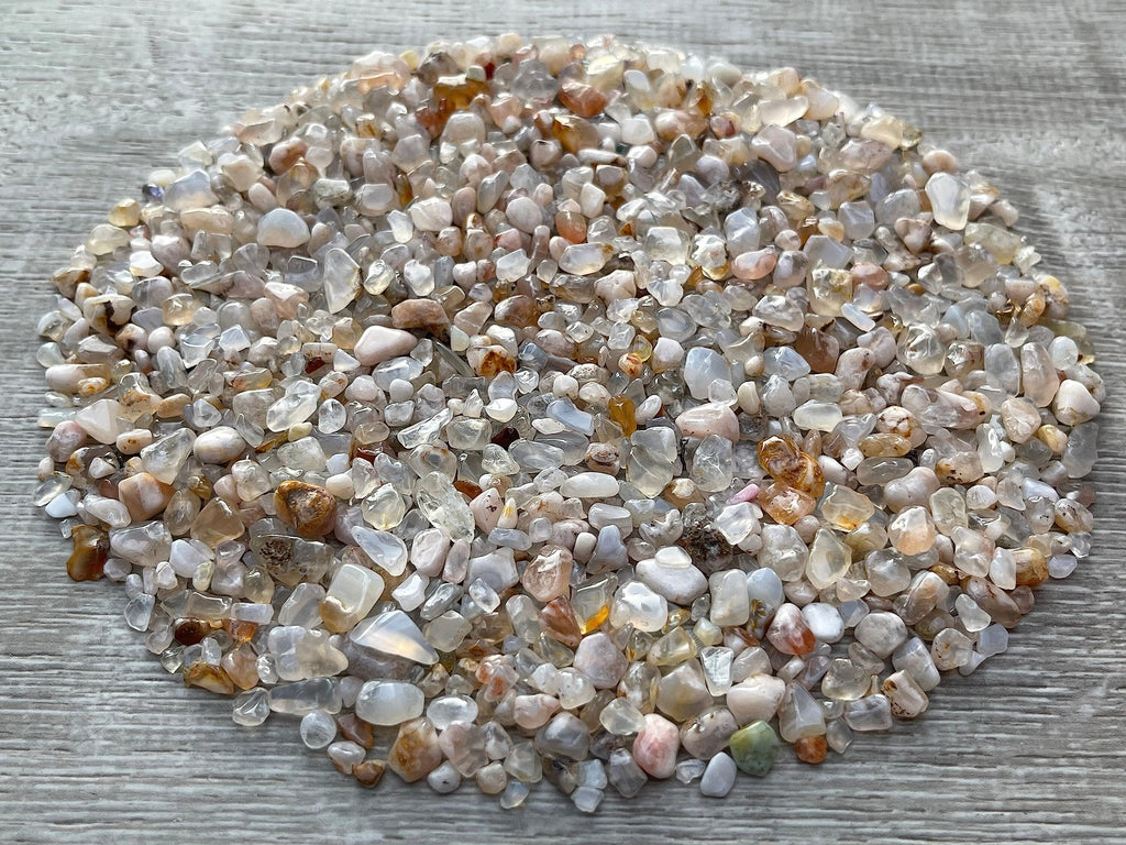• Q: What type of projects can I create with these chips? A: You can use Cherry Blossom Gemstone Chips for various projects such as jewelry making, home decor, air plant substrates, and even orgonite production.