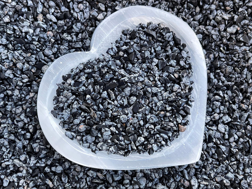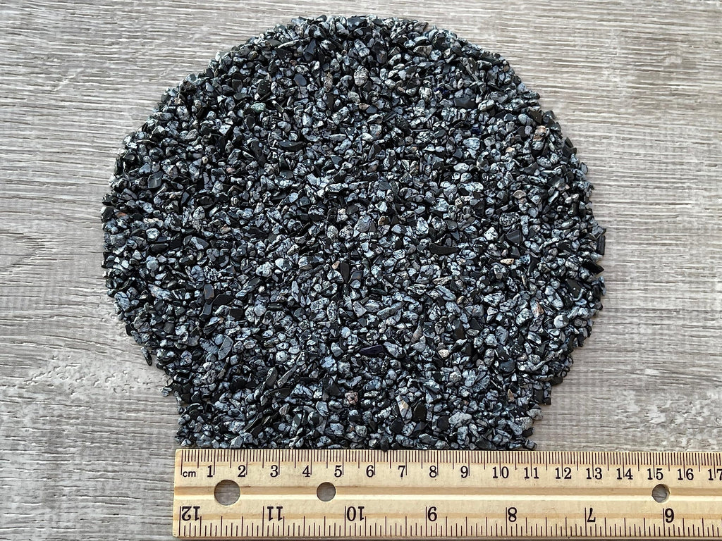 • Q: What size are the Snowflake Obsidian chips? A: The Snowflake Obsidian chips range from approximately 2mm to 6mm, which is about 0.08 inches to 0.24 inches.