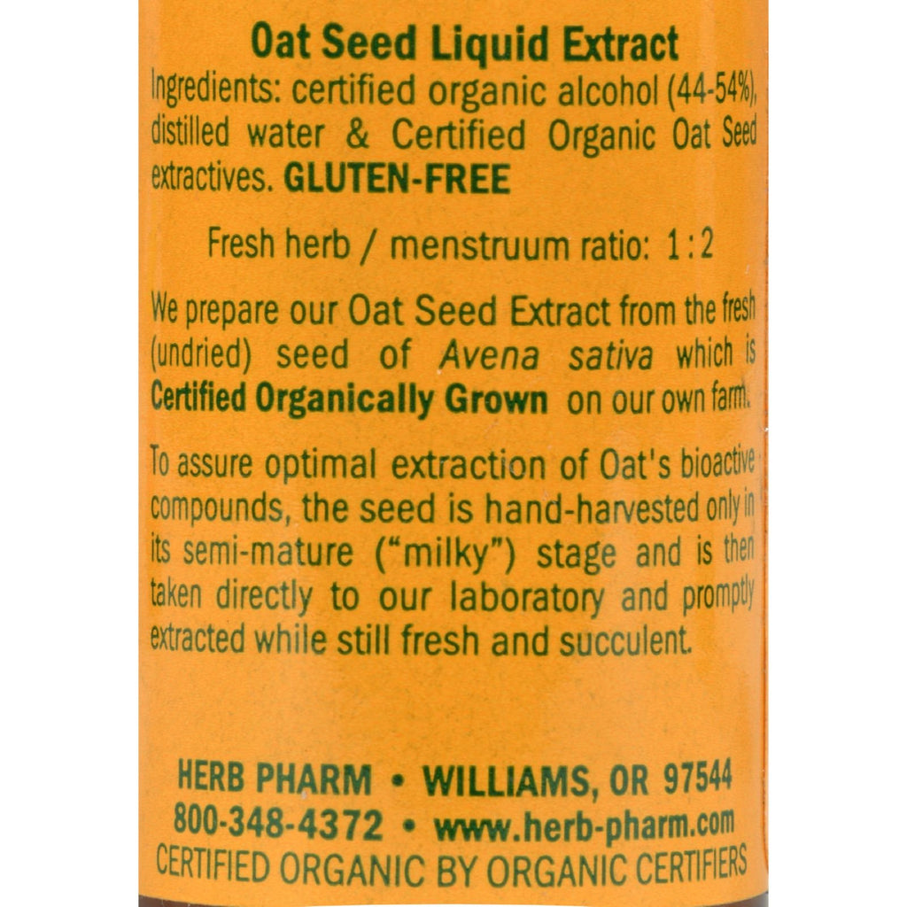 Herb Pharm Oat Seed extract works with the bodys natural mechanisms to support, restore and tone the nervous system . Herb Pharm prepares Oat Seed from the fresh (undried) seed of Avena sativa which is Certified Organically Grown on the company's own farm. To assure optimal extraction of Oat's bioactive compounds, the seeds are hand-harvested only in their semi-mature (''milky'') stage and are then taken directly to the laboratory and promptly extracted while still fresh and succulent. Oat has a very mild taste that is very faintly bitter and earthy. Oat Seed is easily dosed and taken in liquid form. It may be added to water or other liquid for taste and is easily absorbed into the bloodstream. Herb Pharm never uses synthetic solvents. The company's farm is Certified Organic, Bee Friendly, and Salmon Safe. Herb Pharm is the #1 selling liquid herbal extract brand in US Natural Food (SPINS). Herb Pharm is a company of herbalists, scientists, and farmers in GMO-free Josephine County, OR. There, they have been cultivating herbs with care, precision, and respect for nature since 1979. This statement has not been evaluated by the FDA. This product is not intended to diagnose, treat, cure, or prevent any disease.