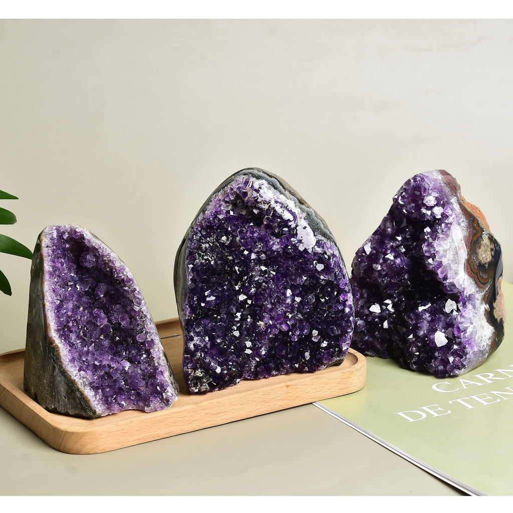 JIC Gem is proud to present to you our Class 1 Amethyst crystal stone between 1-2 lbs.Amethyst is a violet variety of quartz and the name comes from the Ancient Greek word amethustos,a reference to the belief that the stone protected its owner from drunkenness.The ancient Greeks and Romans wore amethyst and made drinking vessels of it in the belief that it would prevent intoxication, while medieval European soldiers wore amethyst amulets as protection in battle in the belief that amethysts heal people and keep them cool-headed.It is one of several forms of quartz. Amethyst is a semiprecious stone and is the traditional birthstone for February. Amethyst occurs in primary hues from a light pinkish violet to a deep purple. Amethyst may exhibit one or both secondary hues, red and blue.The best varieties of Amethysts can be found in Siberia, Sri Lanka, Brazil and the far East. The ideal grade is called ''Deep Siberian'' and has a primary purple hue of around 75C80%, with 15C20% blue and (depending on the light source) red secondary hues.JIC Gem is grade system is equivalent to standard systems, where Deep Siberian is similar to EX grade. The color of amethyst has been demonstrated to result from substitution by irradiation of trivalent iron (Fe3+) for silicon in the structure, in the presence of trace elements of large ionic radius, and, to a certain extent, the amethyst color can naturally result from displacement of transition elements even if the iron concentration is low.Chakra: Seventh Chakra - Crown or Pineal Gland.Associated Planet: Saturn. Zodiac: Pisces (also Aquarius, Aries, Capricorn). Birthstone: February.Service :Customer satisfaction always our first important thing to do. If you find anything please talk to us first,we will reply within 24 hours of your mail, give you a satisfactory solution.