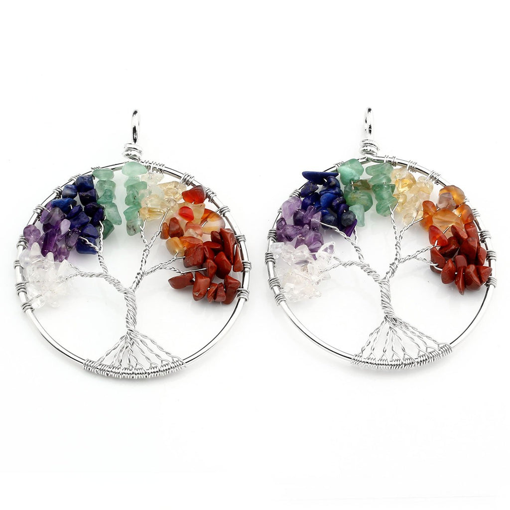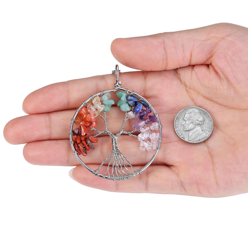 Jovivi Chakra Tree Necklace for Women Mother 's Day Christmas Gifts Crystal Quartz Pendant Size:63x47 mm Chain Length: 21.5 '' Material: Made of natural chipped gemstones with Copper Metal. 7 Chakras - Each stone represents and heals one of the 7 Chakras of the body: 1. Root Chakra - represents our foundation and feeling of being grounded. Located in the base of our spine (tailbone) area 2. Sacral Chakra - represents our connection and ability to accept others and new experiences. Located in the lower abdomen in the stomach area 3. Solar Plexus Chakra - represents our ability to be confident and in control of our lives. Located in the upper abdomen in the stomach area 4. Heart Chakra - represents our ability to love. Located in the center of the chest just above the heart 5. Throat Chakra - represents our ability to communicate. Located in the throat area 6. Third Eye Chakra - represents our ability to focus and see the big picture. Located in the forehead area between the eyes 7. Crown Chakra - represents our ability to be fully connected spiritually. Located at the very top of the head