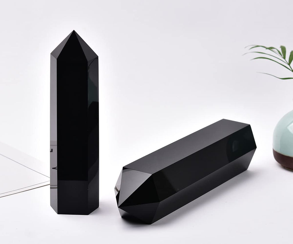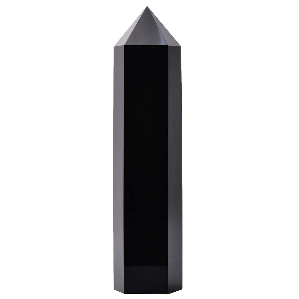 MOGEMT Large Black Obsidian Crystal Tower Natural Healing Crystal Point Wand Obelisk 6 Faceted Reiki Chakra Meditation Therapy Home Decor Gift 1.5-2 LBS