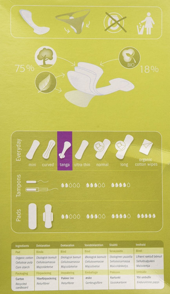 Natural and organic panty liners especially for thongs and g-string underwear. Tanga liners are sleek and slim fitting, with wings for extraordinary everyday comfort.