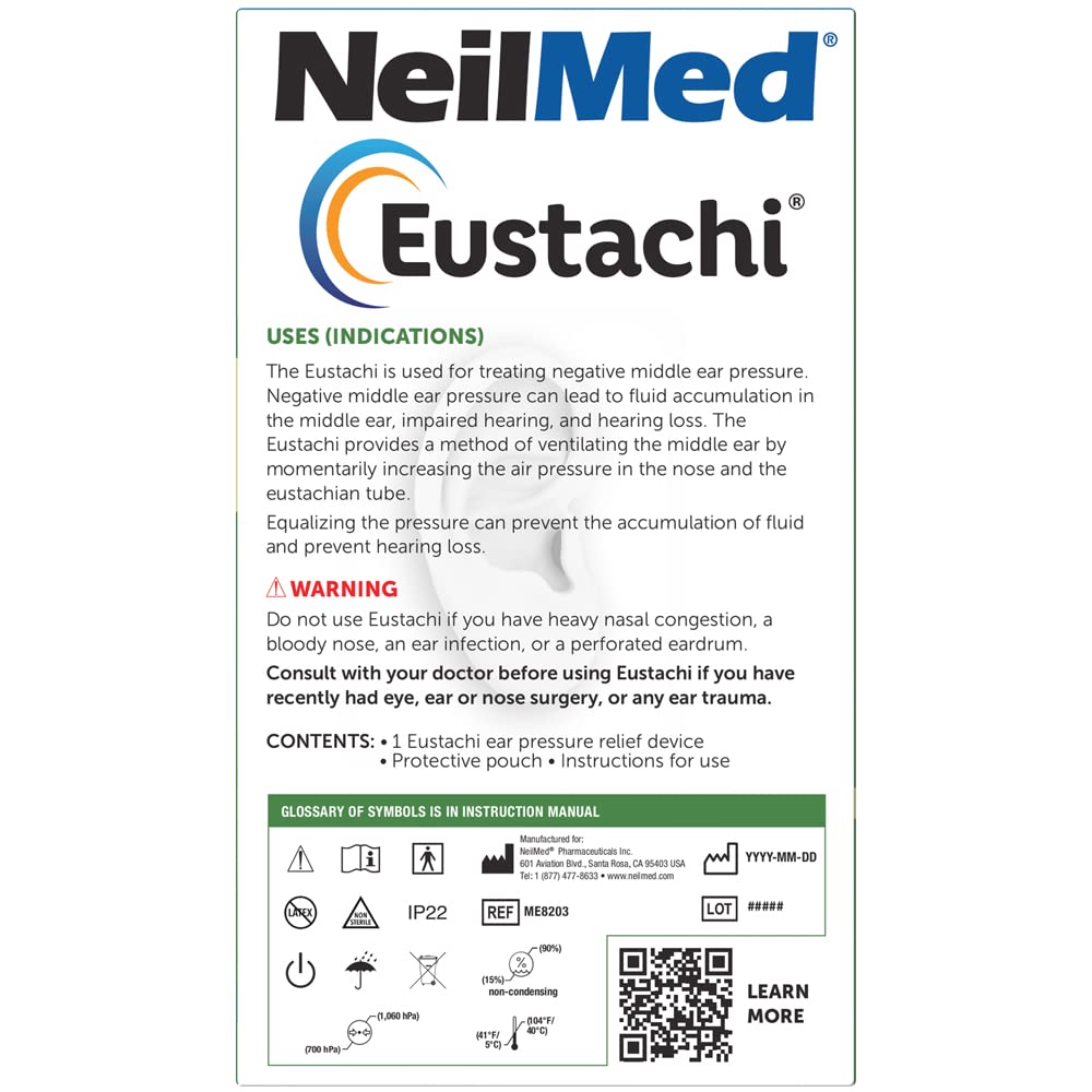 Eustachi unblocks plugged ears by helping exercise the eustachian tubes; all you have to do is swallow! It's quick, safe, and easy to use. Eustachi works with your body's natural mechanism for clearing your ears. Swallowing and yawning normally clear your ears. When swallowing isn't enough, the Eustachi helps using just a little air. Recommended and used by physicians, parents, chiropractors, airline pilots, scuba dive instructors, cold and allergy sufferers, and more. The Eustachi is a medical device that is indicated for the treatment of negative middle ear pressure. As with any exercise or conditioning product, consult your healthcare provider with any medical questions.