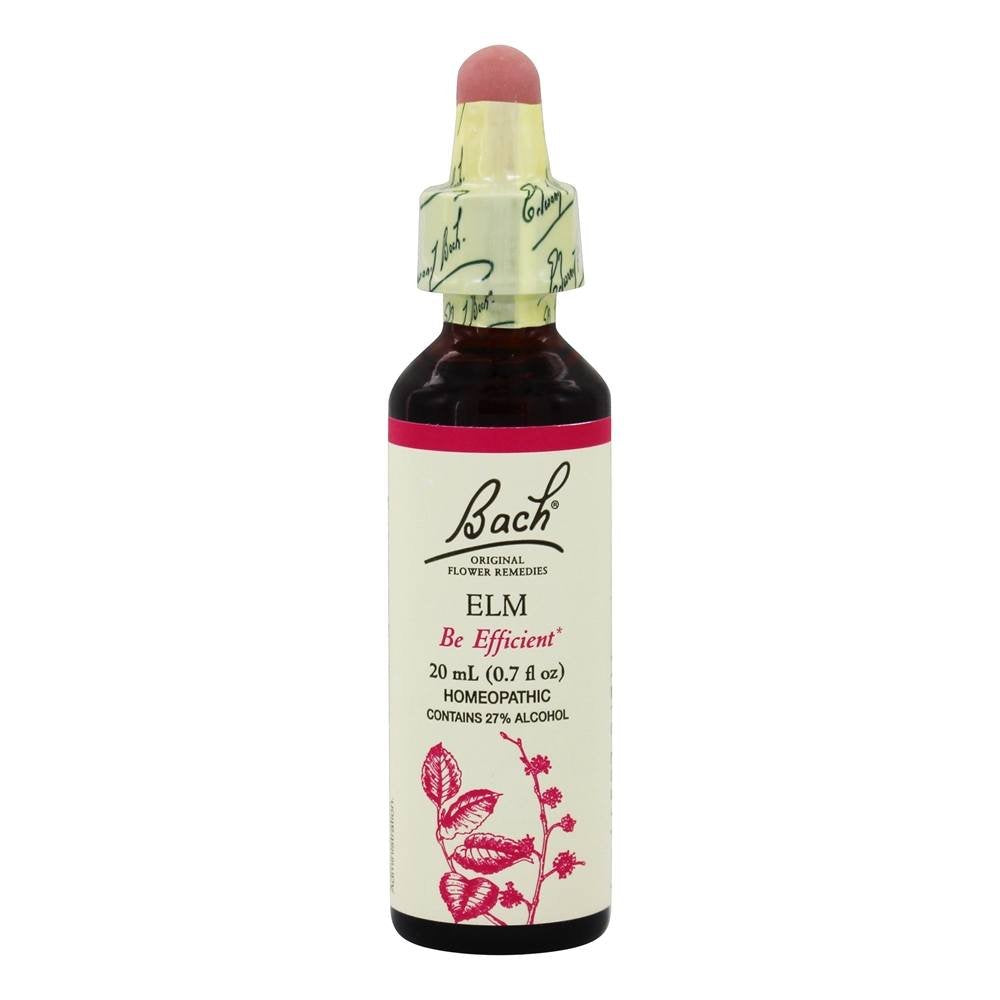 Be Efficient, with BACH Elm. The BACH remedy Elm encourages the positive potential of self assurance, keeping perspective, and returning to efficiency. Struggling to keep perspective leads to a sense of being overwhelmed. Dont get overwhelmed: handle hectic days.Developed by Dr. Edward Bach in the 1930s, the 38 BACH ORIGINAL FLOWER REMEDIES each correspond to a different emotional state, and together form a system that he believed would cover the full breath of emotional experience. Simplicity is critical to Dr. Bachs system, he wanted everyone to be able to understand which remedy relates to their situation and why. He categorized the remedies into seven emotional groupings to further help you find the right personal remedy or mix. BACH ORIGINAL FLOWER REMEDIES is the only maker authorized by The Bach Centre and the only flower remedies sourced directly from Mount Vernon, the home of Dr. Edward Bach. Entirely natural, all your family can use BACH remedies at any time during the day. Contains 27% Alcohol * Claims based on traditional homeopathic practice, not accepted medical evidence. Not FDA evaluated.