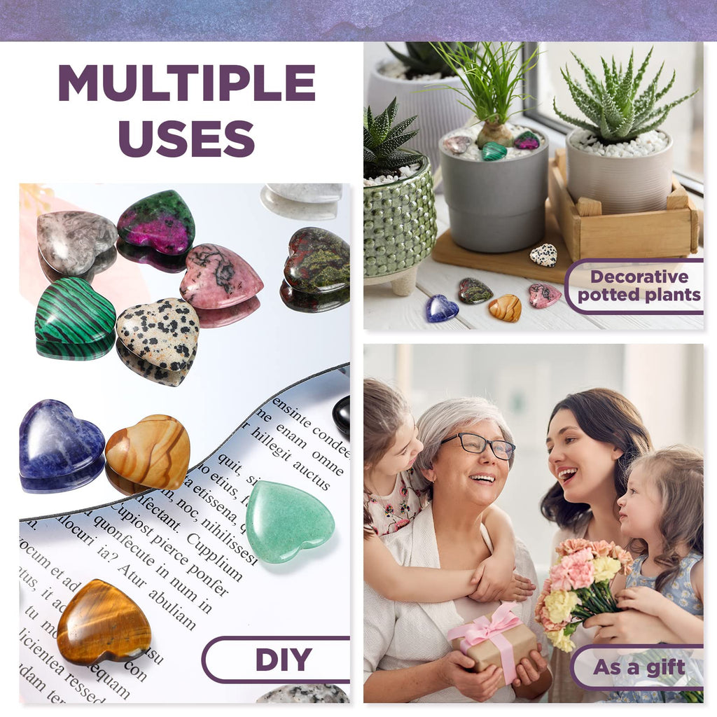 Features: These bulk gemstones and crystals have beautiful heart shapes appearance and abunant colors, which look attractive and beautiful, and you can use them as decorations for home. You can use these crystals stones as thoughtful gifts for your family, partners, friends, colleagues and more, which will help them to relieve stress and get a nice mood. Specifications: Material: natural stonesColor: as shown in the picturesSize: about 0.79 x 0.79 x 0.2 inch/ 20 x 20 x 6 mmPackage includes: 150 x Heart shaped worry stoneNotes: Manual measurement, please allow slight errors on size. The color may exist a slight difference due to different screen displays.