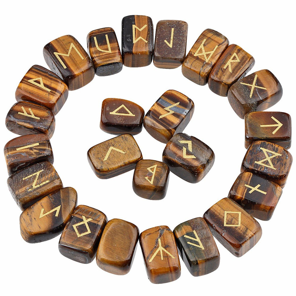 About Runes Stones:Rune Stones are a set of 25(One stone is blank) ancient alphabetic symbols,which are believed to have originated from the Northern parts of Europe sometime during the Paleolithic times.As well as being alphabetic in nature,they are regarded by many as a symbology which is far more powerful in communication than the mortal words that we use today.There is an apparent link between the power of the mind,as well as other magical properties,which are represented by the symbology contained within each symbolic letter.Please Kindly Note:Runes stones sets are made using tumbled stones,these are natural stones and may vary slightly in color,texture,size,minor scratches and marks or dents are a part of the natural stone & not a defect.PICTURE ONLY FOR ILLUSTRATIVE PURPOSE,ACTUAL PRODUCT MAY VARY AS THESE ARE NATURAL STONES:)