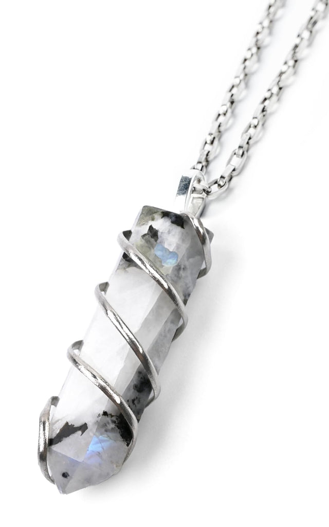 As radiant as Mother Moon hanging in the sky, this Rainbow Moonstone Neklace shines its light on us bringing knowledge, intuition, and strength of self. This luminous crystal is celebrated for its wealth of goddess energy and its ability to help us embrace cycles of change and seasons of growth. A crystal of inward vision, the Rainbow Moonstone takes its sparkle from the stars, its lessons from the natural hands of time, and its color of pearly white light to bring peace, harmony, and a sense of higher emotional healing into our hearts. The Rainbow Moonstone is a stone of new beginnings, it helps us to process changes both big and small and gives us the confidence we need to move outside of our comfort zone. Ever embracing the feminine mystique and with a commitment to peeling back the petals of the crown chakra, this rare reiki stone can be an amazing addition to your gemstone pack, especially if you dream of journeys that take you to the very core of your being. What makes Rainbow Moonstone so powerful? It acts as a prism, effectively collecting the goddess light of the universe and sending it straight to your aura. Artists and anyone who feels the need for more self-expression in their life will love the Rainbow Moonstone, as will those who seek support through times of change or hardship.