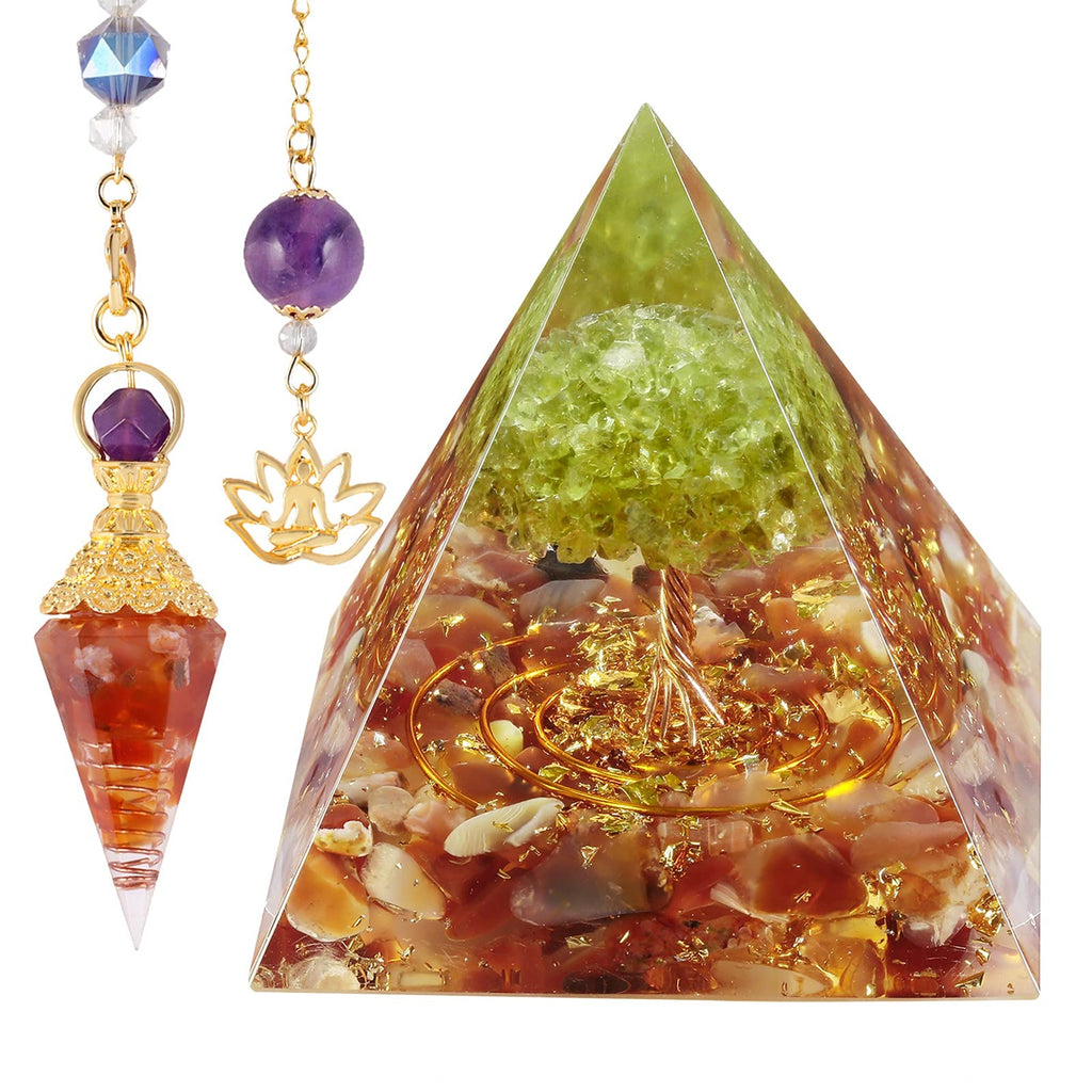 SUNYIK Energy Copper Wire Orgonite Kit-Orgone Pyramid & Stone Chips Crystal Point Pendulum Healing Orgone Crystal Stone for Chakra Grid Natural power are absorbed from the facted directions, the top has a strengthening effect on it. The positive energy will output into you through the crystal points of the pendant and pyramid, which is the amazing choice to perfect your chakra set when reiki healing, balancing your chakra and meditation. Package: 1* orgone energy generator; 1* orgone pendulum; 1* black gift box; 1* burlap gift pouch with our brand name ''SUNYIK''.