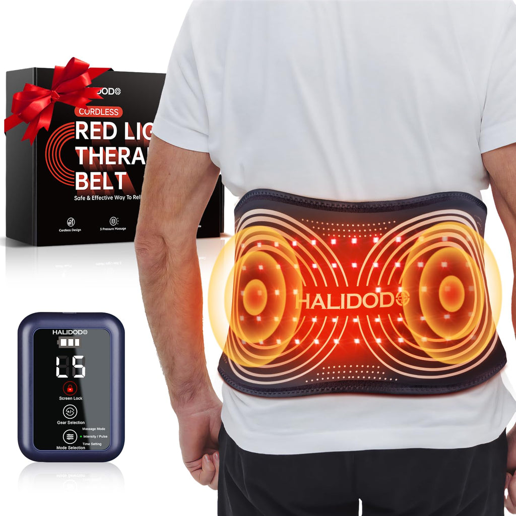 Upgraded Red Light Therapy Belt & Vibration Back Massage Heated Red Light Therapy Device for Body - Magnetic Controller, 660nm&850nm, Cordless for Back Shoulder Muscle Pain Relief