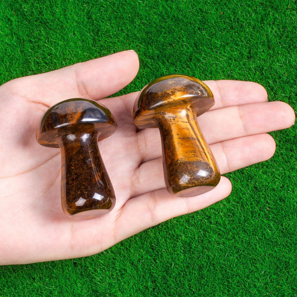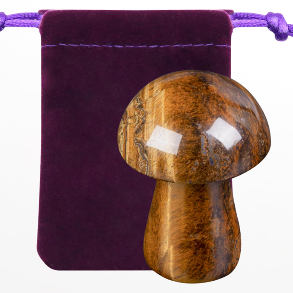 • Q: What are the benefits of using the Tigers Eye Crystal Mushroom? A: The Tigers Eye Crystal Mushroom is believed to help balance the endocrine system, clear negative energy, enhance self-worth, and support psychic abilities. It is often used in meditation and reiki treatments.