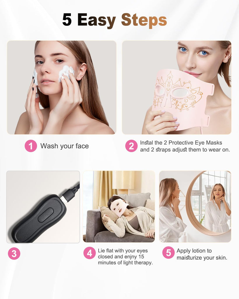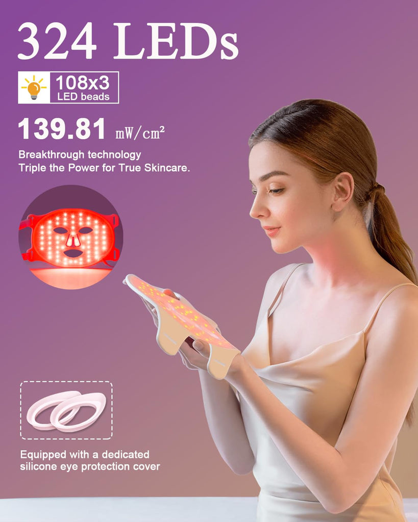 Red Light Therapy for Face, LED Face Mask Light Therapy,Near-Infrared 850 Red Light Therapy Mask(NIR),Portable,Rechargeable and Remote
