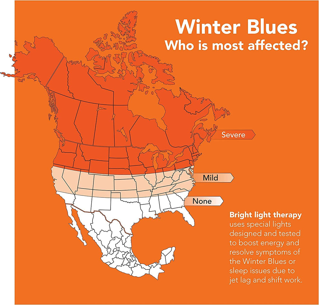 A mood and energy enhancing light therapy device. The TheraLite Aura wellness lamp is a perfect companion for those experiencing mild to moderate symptoms of light deficiency. Therapeutic 10000 LUX of comfortable glare-free white light provides effective relief while emitting NO UV! Bright light therapy is the first line of treatment recommended by health care professionals to help alleviate the Winter Blues. Light therapy is also a non-invasive effective option for treating jet lag,circadian sleep issues, shift work adjustment or non-seasonal mood disorders.1. Why do research experts & medical doctors recommend Theralite manufactured by Carex Health Brands? Theralite, manufactured by Carex Health Brands, are from the family of lights used in clinical trials across North America since 1989. Day-Light technology was selected by Dr. Raymond Lam, Medical Director for the Mood Disorders Program at the University of British Columbia Hospital, for use in a three-year, 200-person controlled study of bright light therapy. Dr. Lam says he selected our lights because they use the latest technology, are of excellent quality, durability and aesthetics, and meet all recommended safety standards. The company also has a track record of dependability. 2. What is bright light therapy? Bright light therapy uses daily, scheduled exposure to intense levels of artificial bright light.Researchers have deemed the fluorescent white light box as the gold standard for bright light therapy.3. What is bright light therapy used for? Researchers have studied bright light therapy for the treatment of: The Winter Blues Disrupted sleeping patterns Jet Lag/Shift Work Adjustment4. What are the Winter Blues? The Winter Blues are a seasonal condition that can occur as days grow shorter. Symptoms may include: feeling down, moodiness, low energy, fatigue, lethargy, weight gain, social withdrawal or disrupted sleeping patterns.