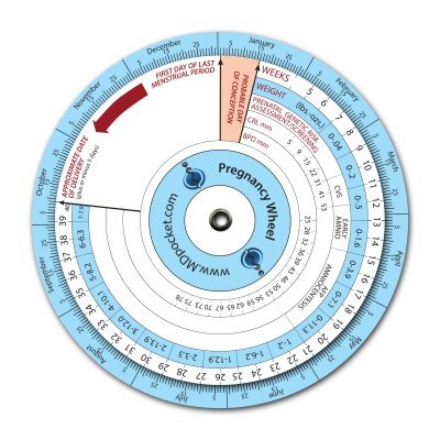 Guide patients through the myriad of dates with this monthly pocket reminder for all pregnant women. Ideal for any nurse, midwife, students, residents or clinical staff to help predict the next nine months of pregnancy, including the approximate date of delivery.. Each wheel is covered in heavy lamination to protect from daily use.