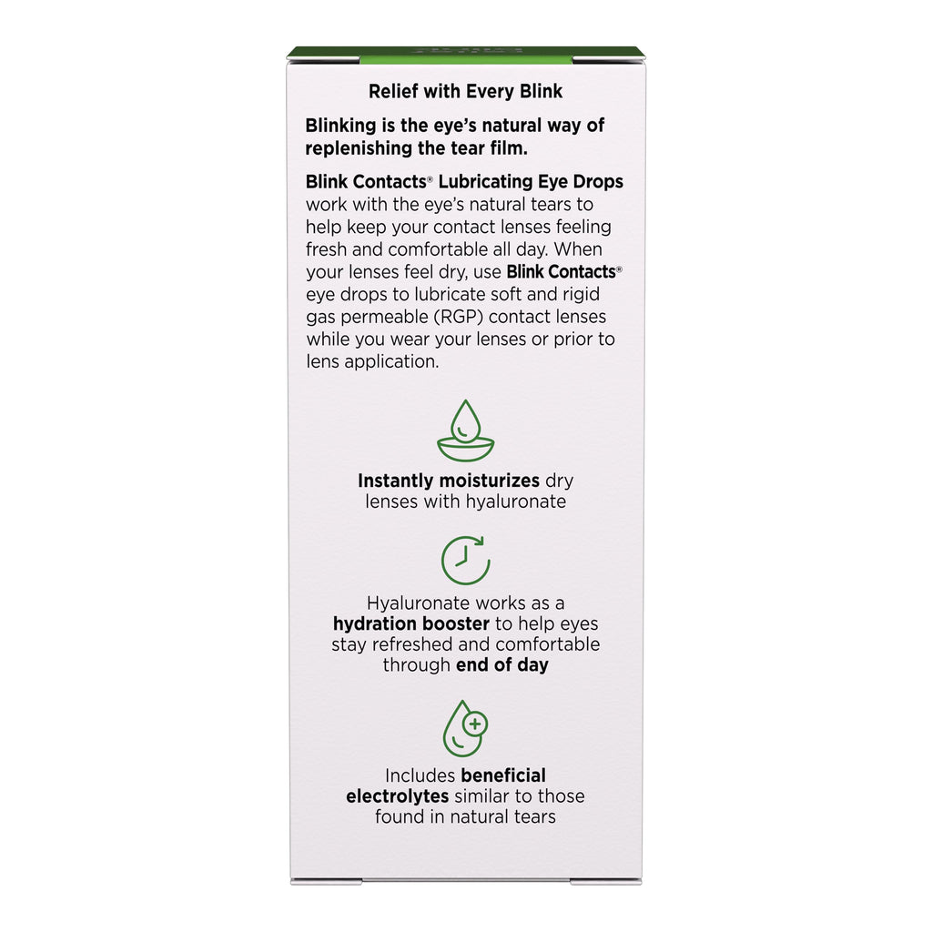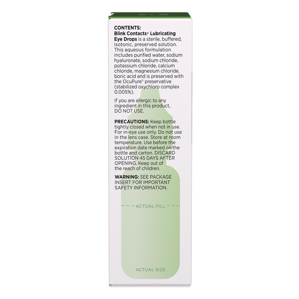 Amo blink contacts lubricating eye drops, 2 Count.Ingredients: blink contacts lubricating eye drops is a sterile, buffered, isotonic, preserved solution. This aqueous formulation includes purified Water, Sodium Hyaluronate, sodium chloride, Potassium Chloride, calcium chloride, magnesium chloride, boric acid and is preserved with OcuPure preservative