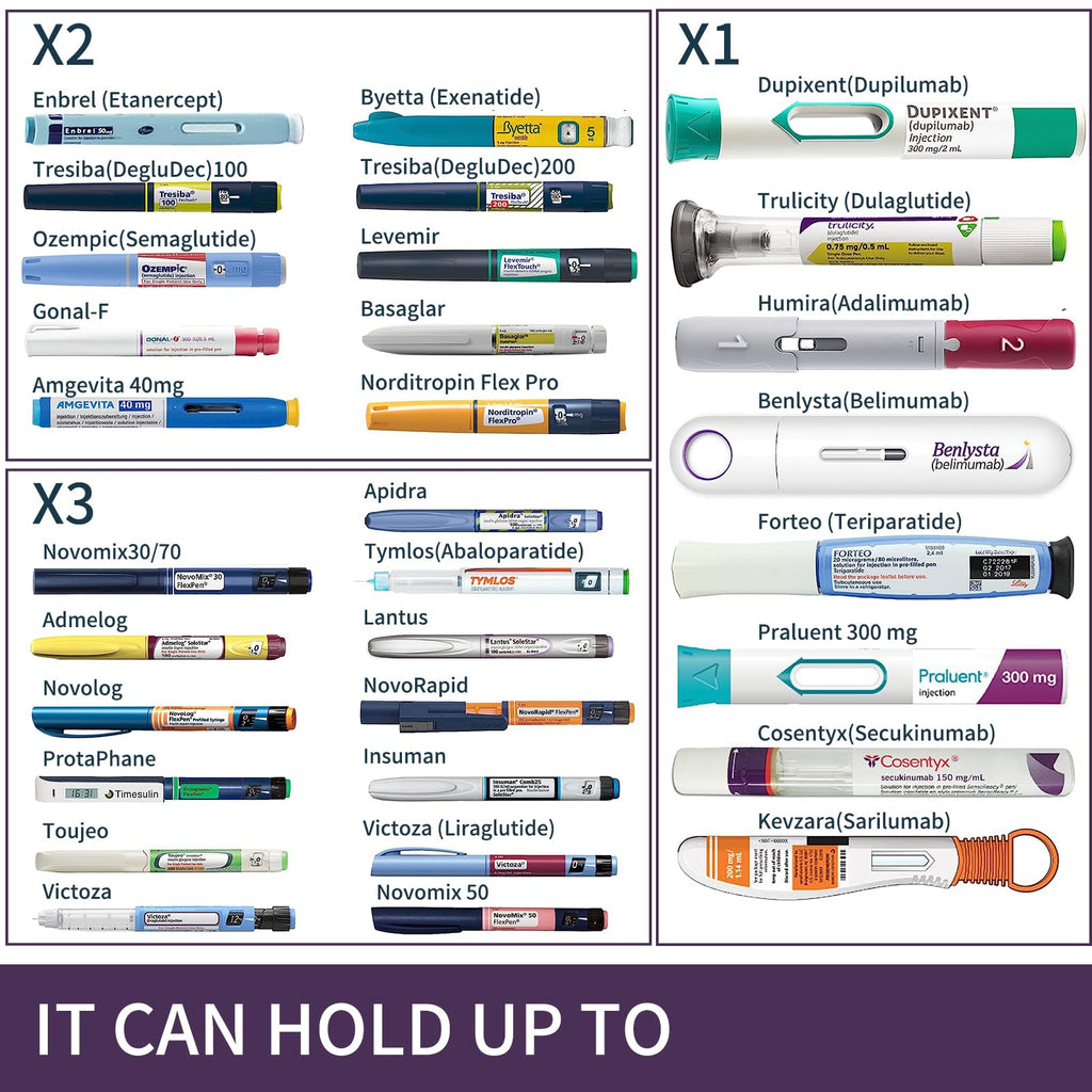 • Q: What types of medications can be stored in this cooler? A: While it is designed for insulin pens, the cooler can accommodate any medication that requires safe storage within the specified temperature range.