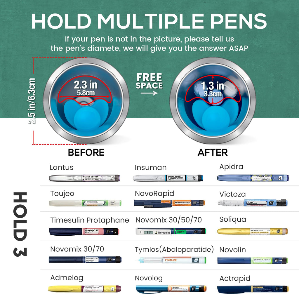 • Q: Is this cooler compatible with all insulin pen brands? A: The cooler is designed to be universally compatible with up to 95% of popular insulin pen brands. For specific compatibility, please refer to the detailed table in the product images.