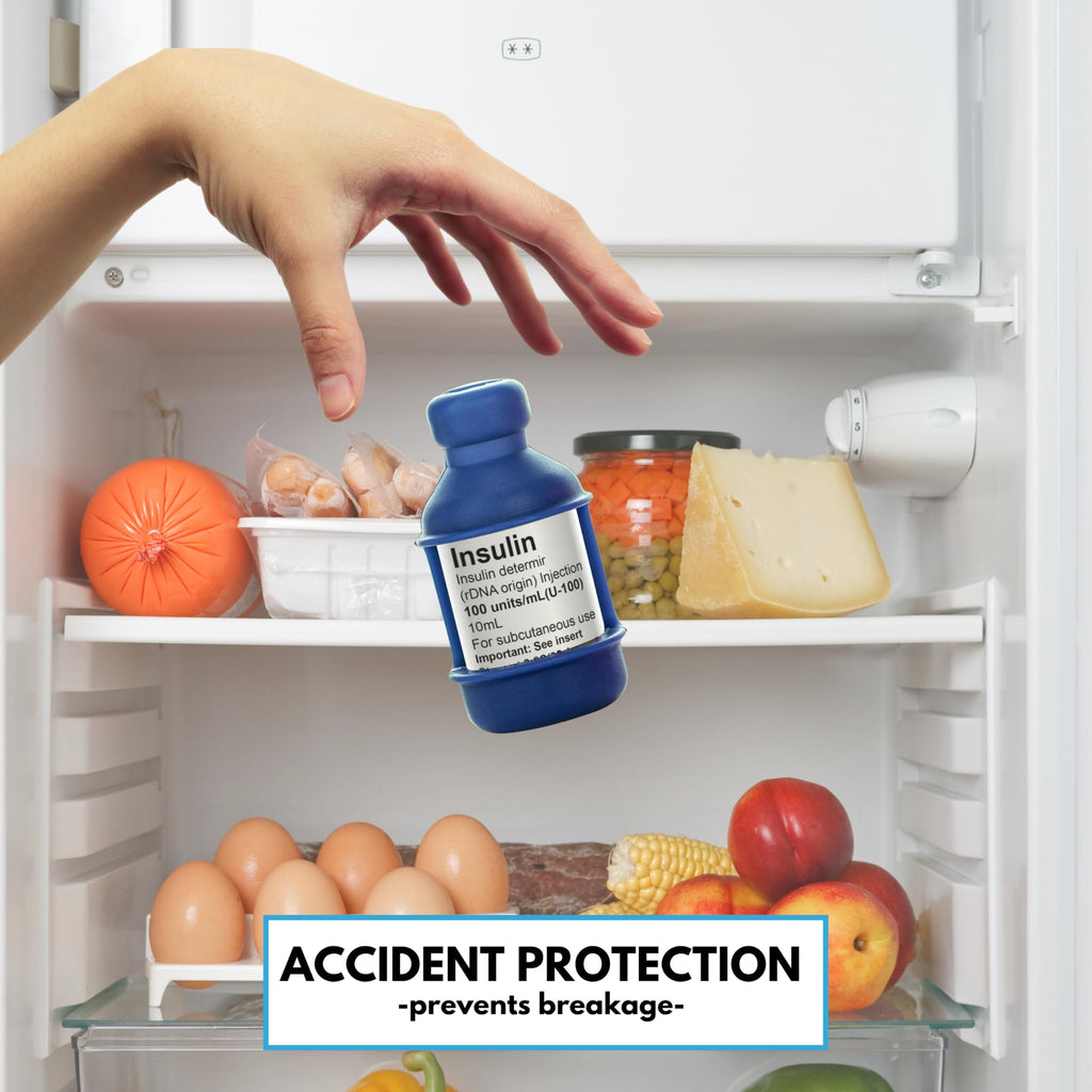 Get a better grip on your insulin with VIAL SAFE. Protects against accidental drops! Hypo-Allergenic 100% silicone makes easier to grip than an unprotected vial. Design includes an easy-read label window. Never replace a broken vial again! This 5-Pack includes 5 Vial Safe Insulin Vial Protectors which are specially designed to fit 10mL vials of Humalog, Humulin, NovoLog, NovoRapid, & Novolin.